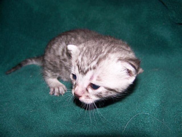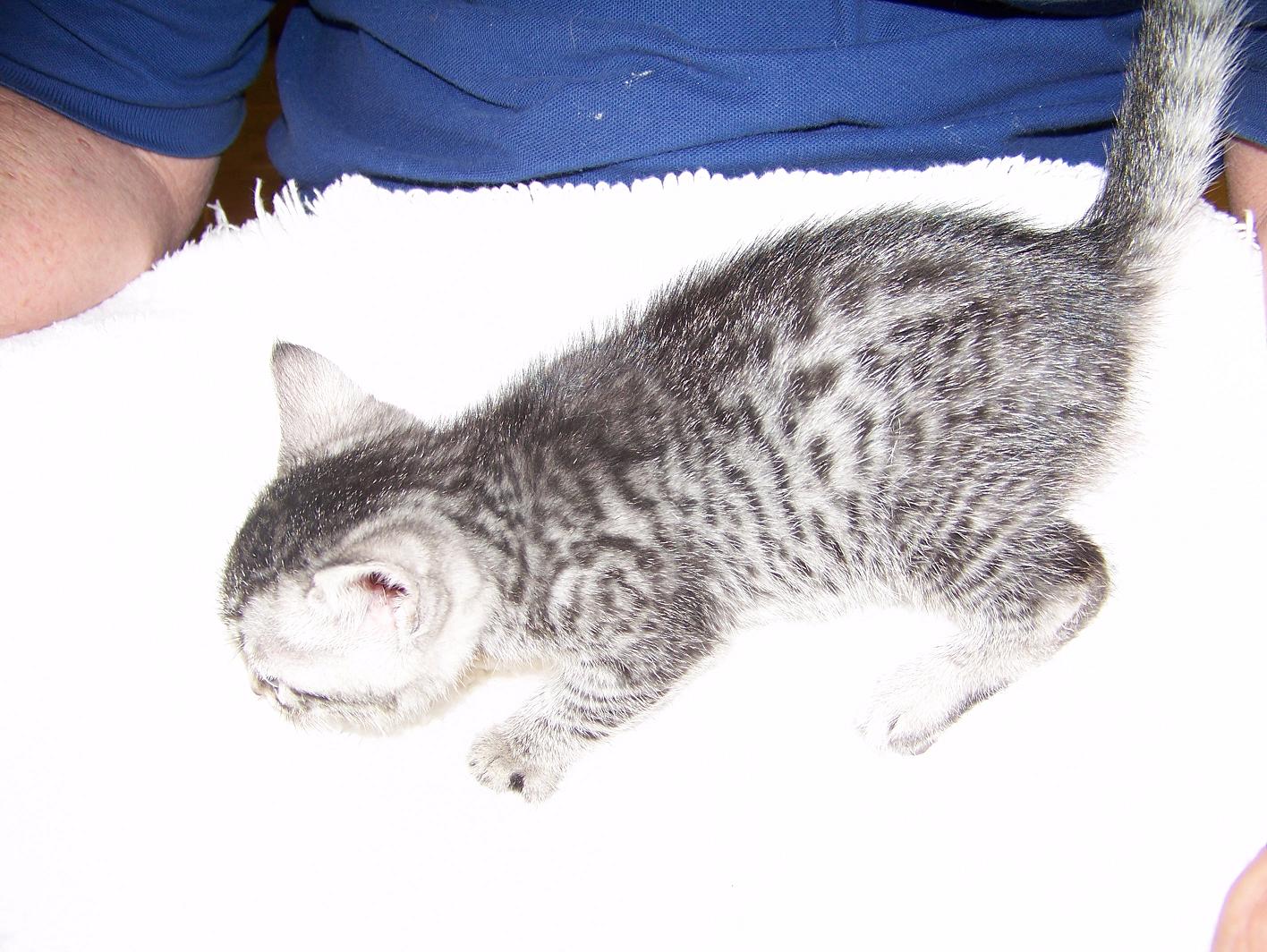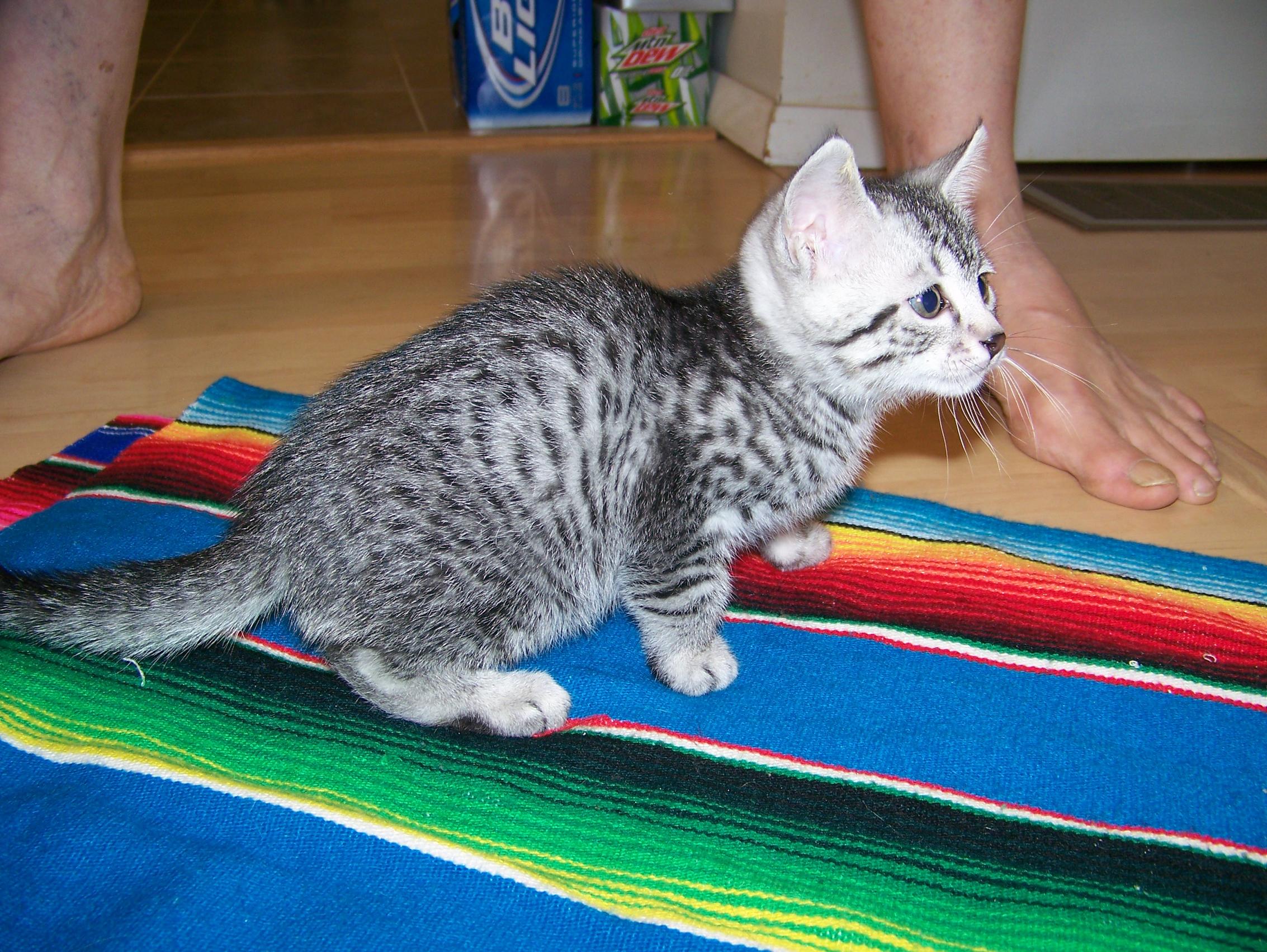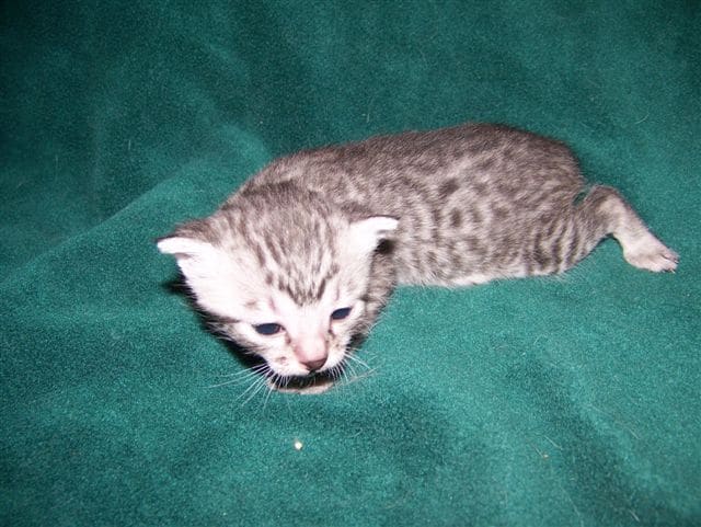 Fay – Egyptian Mau Silver Female DOB 3-2-10 Fay a Silver Egyptian Mau female born 3/2/10 and shown here at 2 weeks old is under contract to Kristin in North Carolina This Silver Egyptian Mau Female looks very much as a baby like her full brother Dusty. She is under contract to Kristin Fay - Egyptian Mau Silver Female 5 weeks old and looking great! Fay - Egyptian Mau Silver female shown here at about 7 weeks Faye, Egyptain Mau female, in her new home with Lambert her new Mom's adult Egyptain Mau. [Show slideshow]
