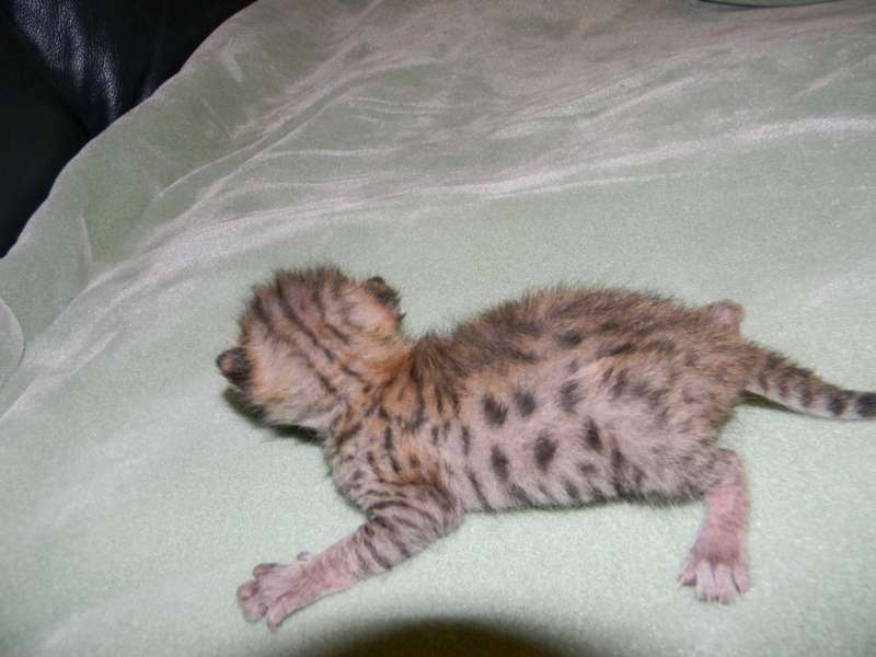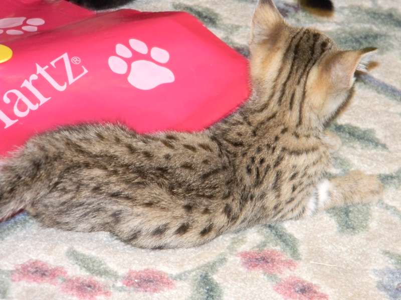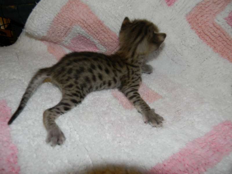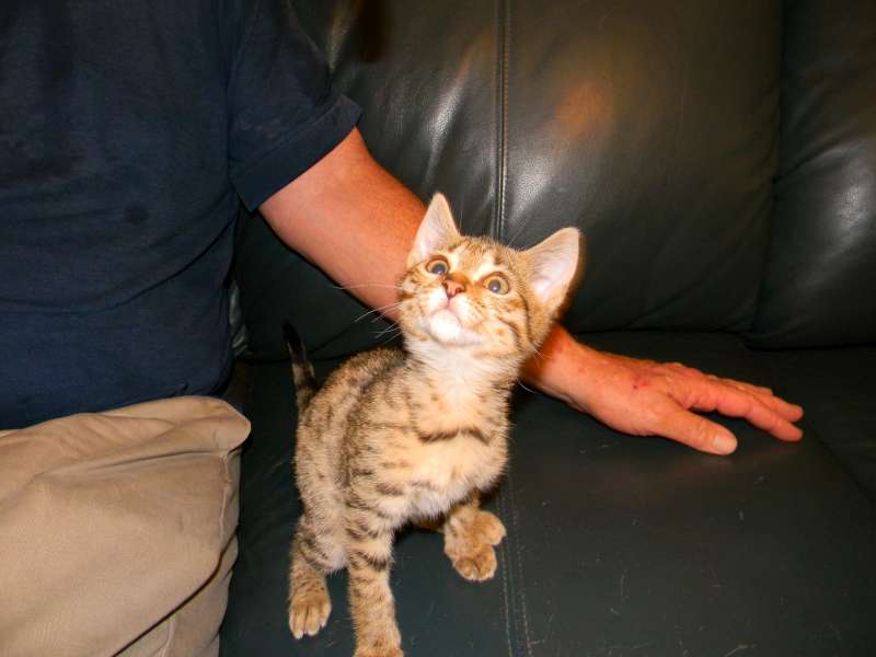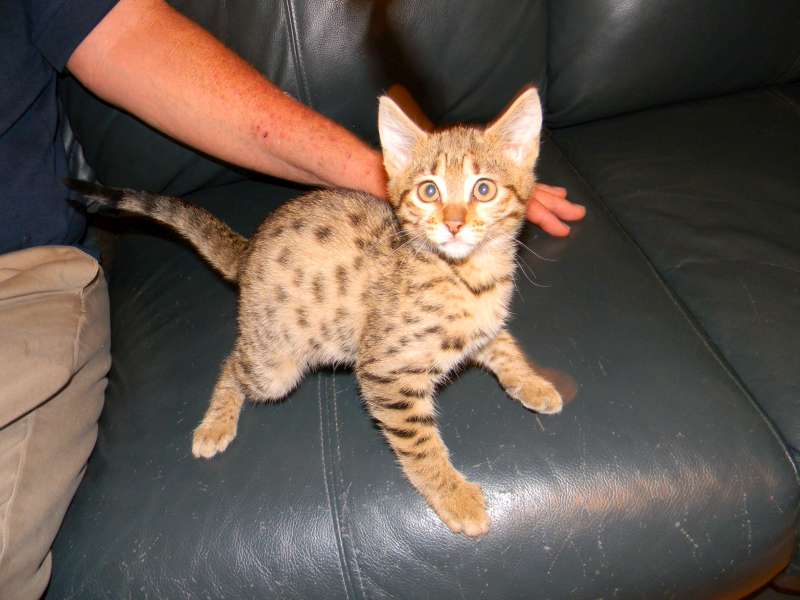 This little F-4C savannah female has big clear open spots on a beautiful golden coat. She and her sister Lots of spots have gone to their forever home with Sherie and husband in North Carolina and Florida.