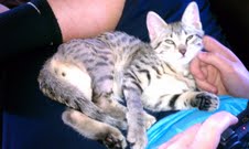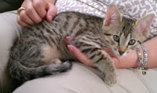 Just wanted to give you an update on Horus. He is doing very well. He has adjusted very quickly to the house and to my other pet a 14 year old Yorkie. They are now playing, running after each other and licking each other on the face. The 1st day or 2 was a little iffy but they are doing great now. I had my grandson's 15th birthday luncheon on Sunday and was a little concerned about Horus and how he would react to so many different people in the house. We had all the way from a 1 year old to a 76 year old and he did great. He didn't scratch or bite anyone. He played with all the grandkids very well and even went up to the 1 year old to let her pet him. She was very easy so that made it smoother. He has such a soft touch. Several people asked me if he had been declawed because he was so easy with them. No nails out at all. But when it was all finally over both Horus and Nefi (the Yorkie) and me curled up on the couch and went into a coma for about 2 hours. We were all wore completely out. He loves all his toys and especially his big climbing tree. He's going to the vet on Saturday for his next set of shots. I send you some pictures soon.