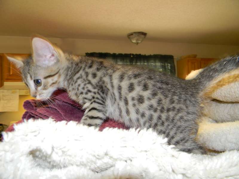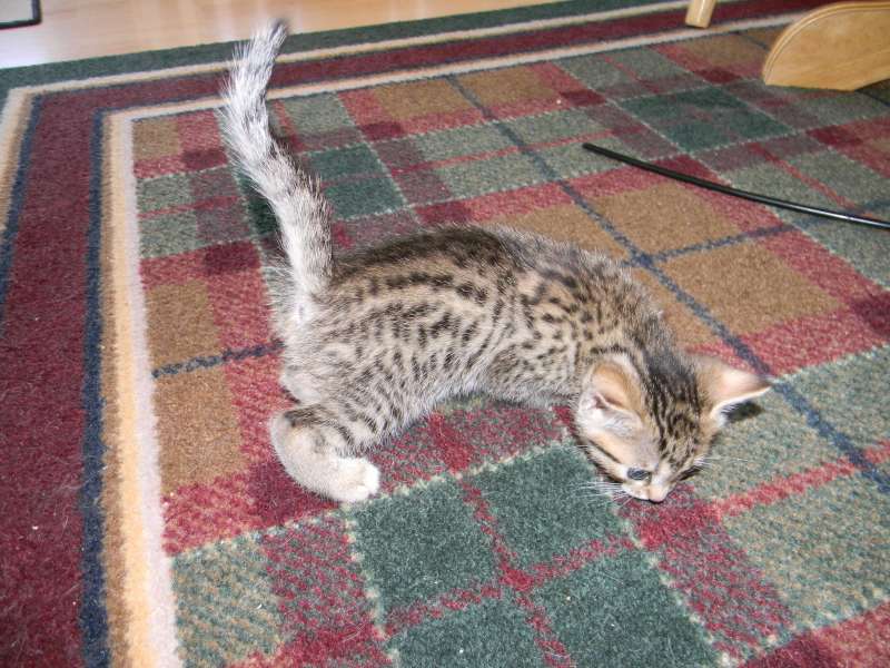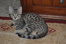 Growing like weed little Horus Bronze Egyptian Mau male is hard to keep still for a picture.