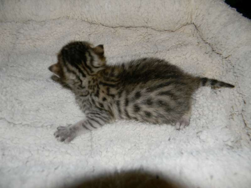 Just opening his eyes, Horus, Egyptian Mau will be a beautiful boy.