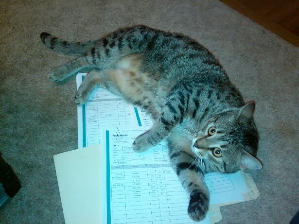 He is really growing now, a little over 14 lbs.He has quite the personality and is incredibly curious about everything that is going on. We had our plumber and furnace guys in this past week to do service work before winter sets in and they both said he was in the middle of everything they were doing. He even climbed into the plumbers tool box and was pulling out stuff and dragging it across the floor. I've also taught him to fetch. I can throw his toy almost anywhere and he goes and gets it and brings it back to me. He lays it down beside me, I can't get him to put it in my hand yet. He will only do it for me which aggravates my husband to no end.