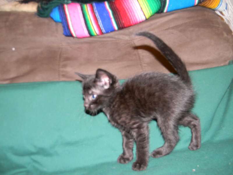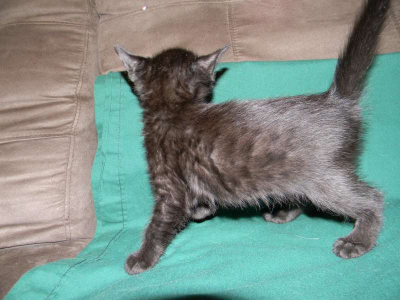Kanya Shanika Savannah F-6B Smoke Female DOB 4-2-15What a pretty little smoke F-6B Savannah girl will be going home to Wanda and her big sister Nala. [Show slideshow]