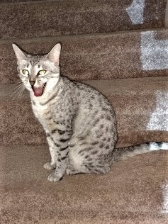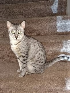 Lilly Egyptian Mau Silver Female MM DOB 5/7/15Lilly was sold to a Breeding program In SC. The program failed and she came home to Belle Hollow. We placed her as an Adult with Linda in SC where she is a treasured pet. [Show slideshow]