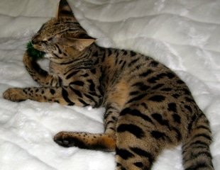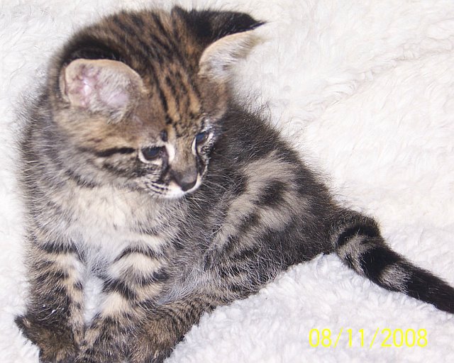 Lilly – F-1 SavannahAn F-1 Savannah female born 6/25/08 She has gone to her forever home in West Virginia with Debra at 2 months at 2 months at 2 months Lilly at 10 months Lilly at 10 months Lilly F-1 Savannah female is a fabulous cat Nobody looks as good as Lilly by just stretching [Show slideshow]