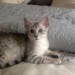 This beautiful silver Egyptian Mau girl has been re-homed with Rhea and her family in MD. A classic example of the breed she will be a fabulous new furry family member.