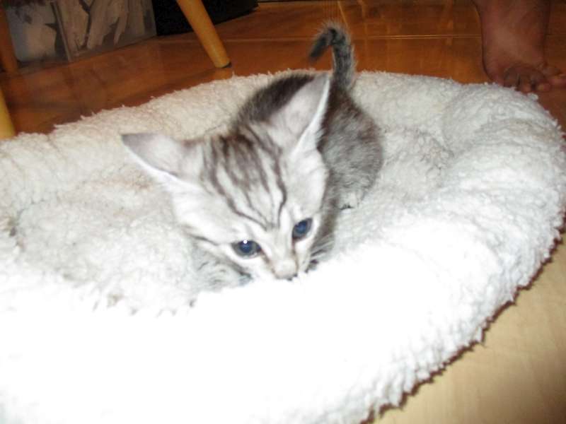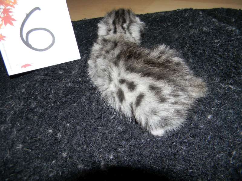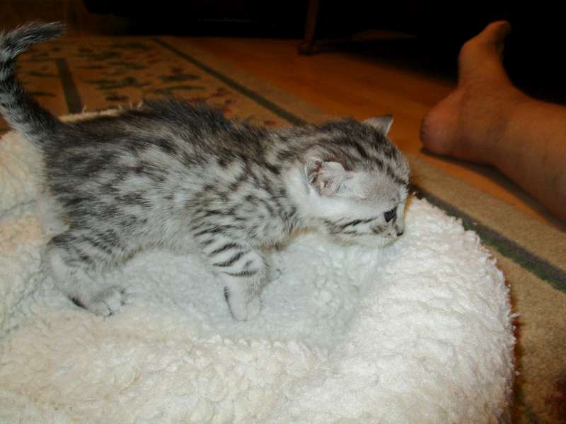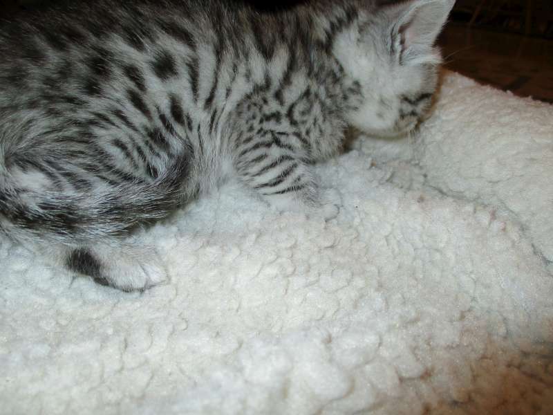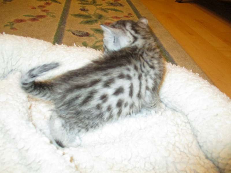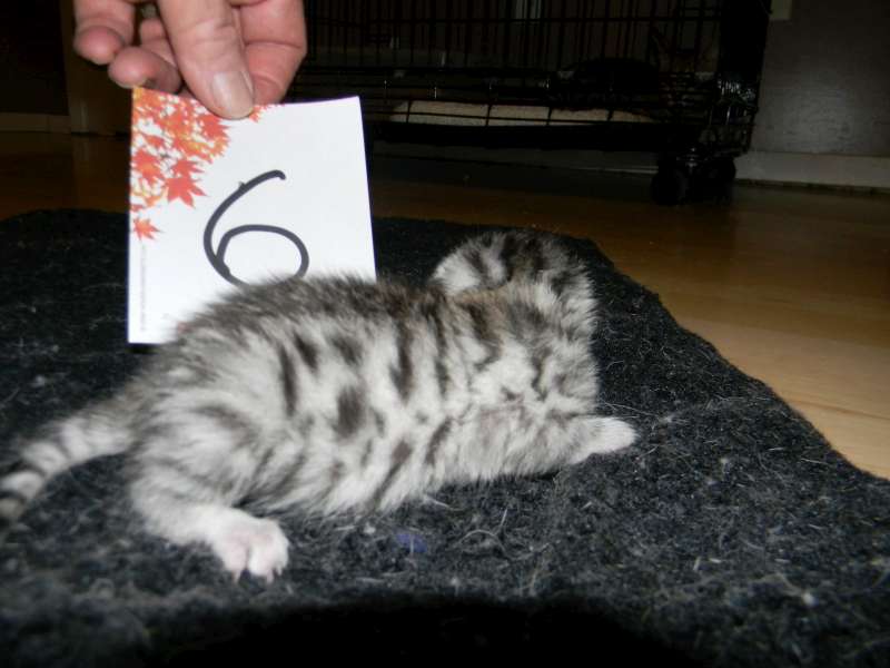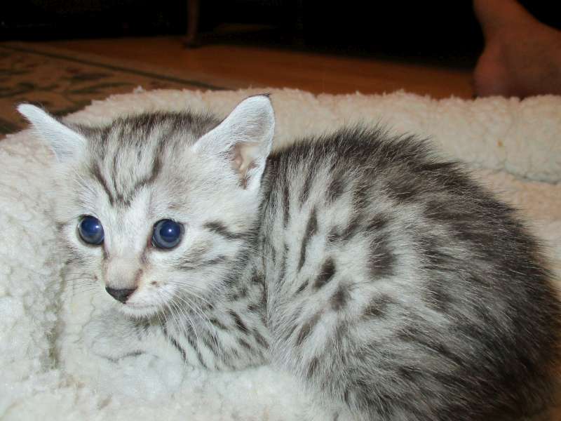 Mau Silver female #6 DOB 4-15-16This Silver Egyptian Mau girl will be a stunning adult and a superior pet. She will be going to live with Jeremy and Jennfer and Oz another Belle Hollow Mau in TX. [Show slideshow]1 2 ►