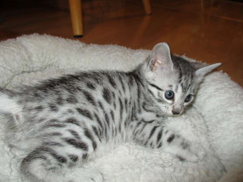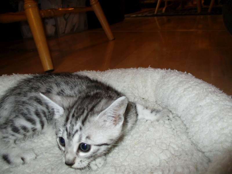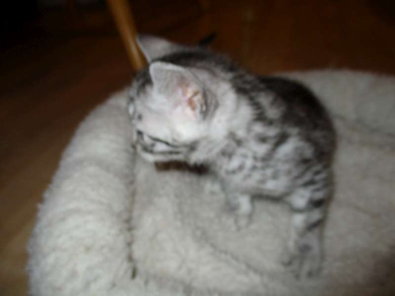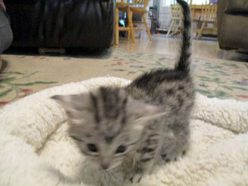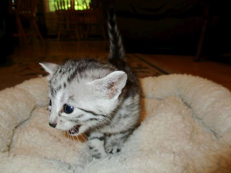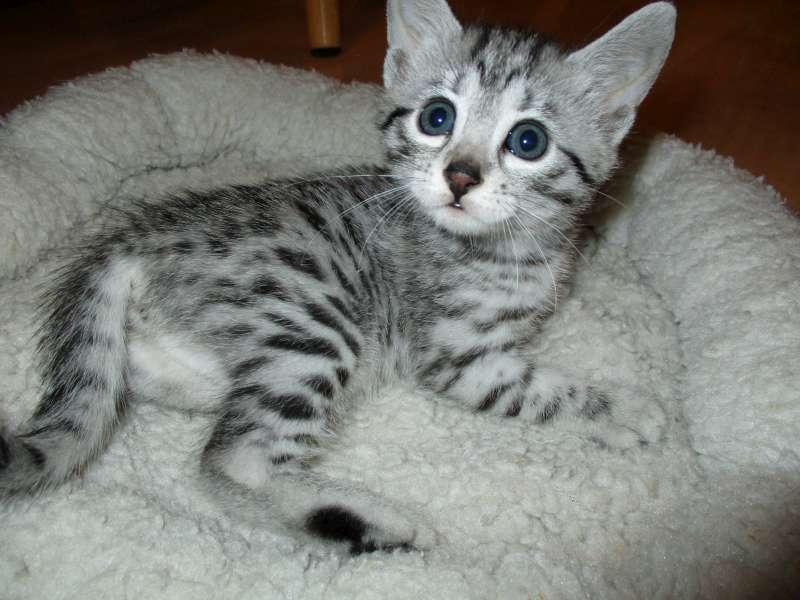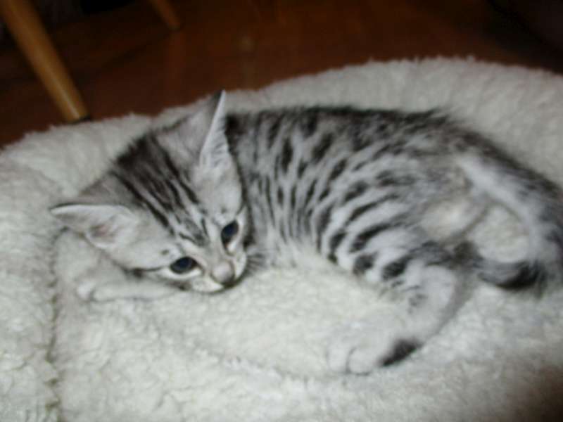 Mau Silver female#4 Maybe DOB-4-15-16This precious silver Mau Baby will be going home to Julie and her husband. [Show slideshow]1 2 ►