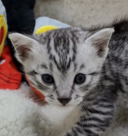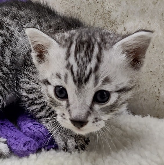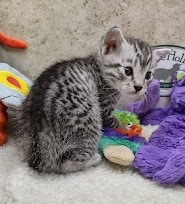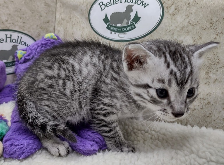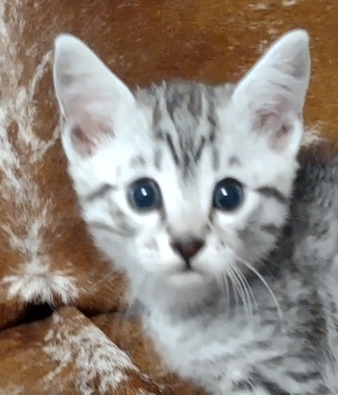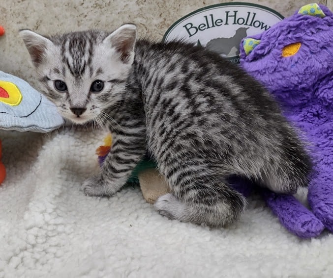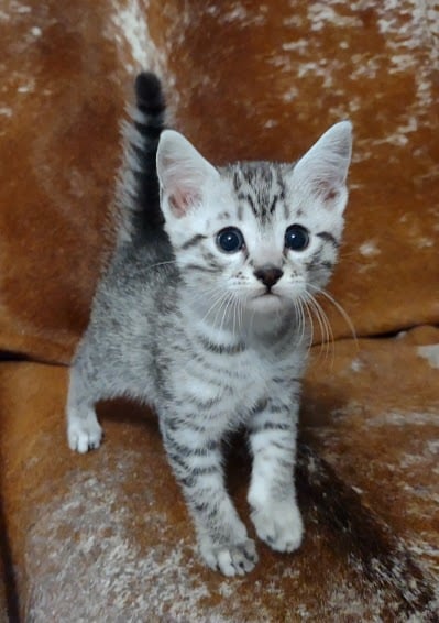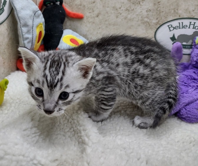 Mau silver Male #1 DOB 11-3-22Such a sweet Mau guy he will grow to be someone's stunning pet and best friend forever. He will be going to live with Marilyn in IN [Show slideshow]1 2 ►