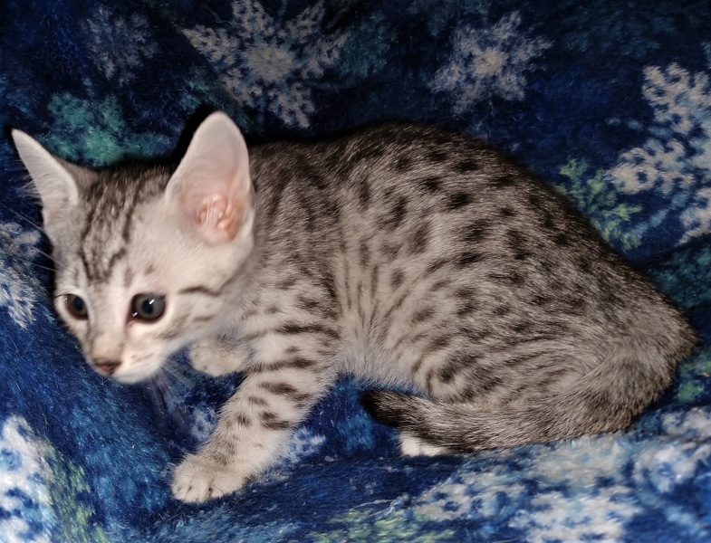 Mau Silver Male DOB 4-1-20What can you say about a new baby silver mau boy. Purrfection! This guy was born and bred to be Aasheeh's new BFF NC [Show slideshow]
