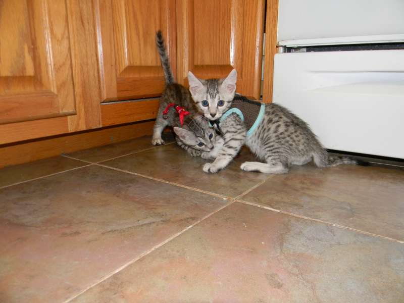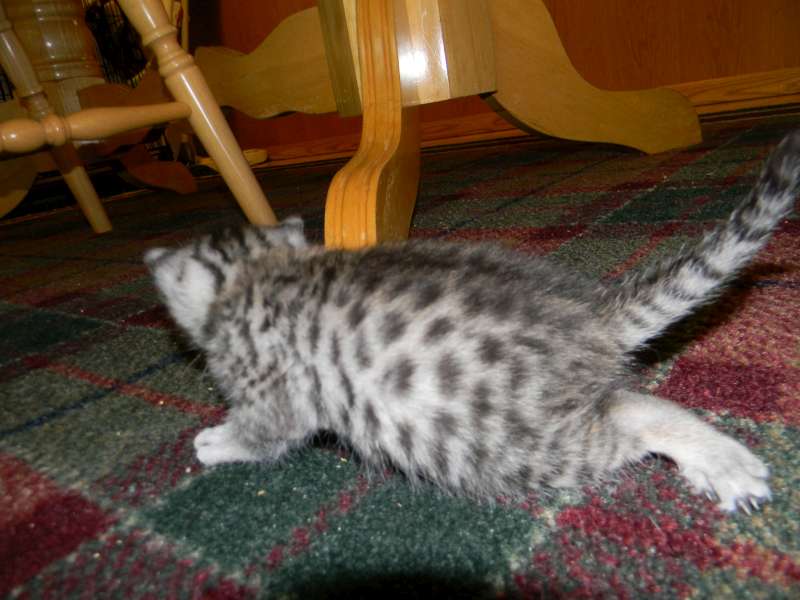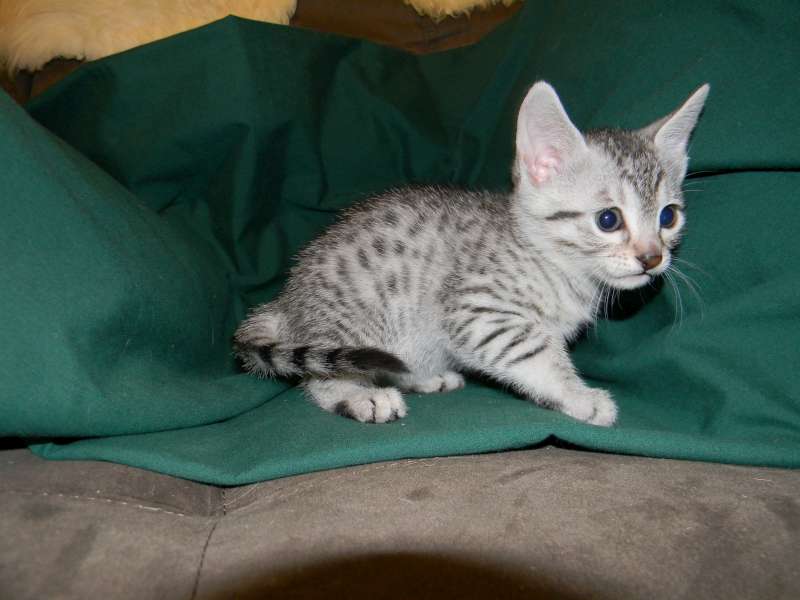MauWee Silver Egyptian Mau #3 female DOB 9-1-14This beautifully spotted little mau girl will be going home with Ann and Gary in NC. What a sweet face on this little Egyptian mau girl. This mau girl has some great spots too! This little Mau girl is showing off her spots. Another Angelic Mau face! No time for pictures! This Mau girl is just beautiful! Mauwee is too cut at this age. On the move now, little Mauwee is an explorer A beautiful mau girl More spots than stars in the sky Mauwee was not excited about her harness. She finally settled in but she will take more work. [Show slideshow]