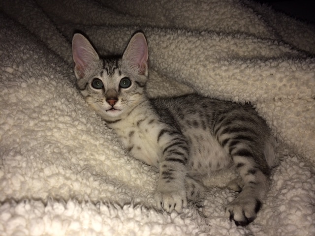 So tiny now this little silver egyptian mau will grow into a stunning adult.