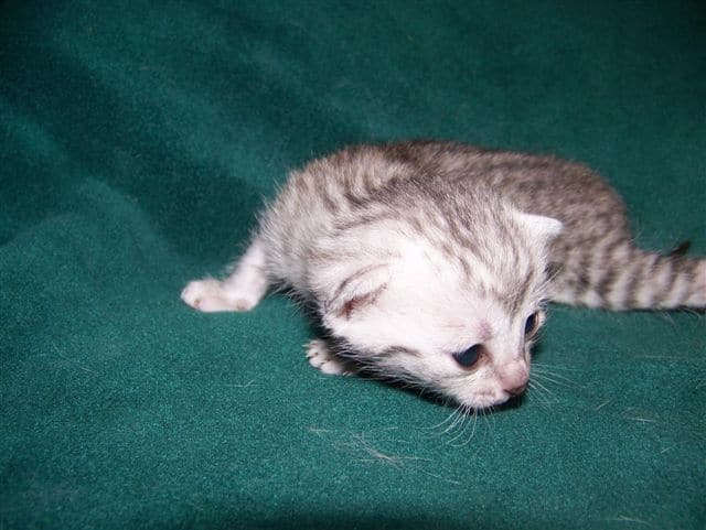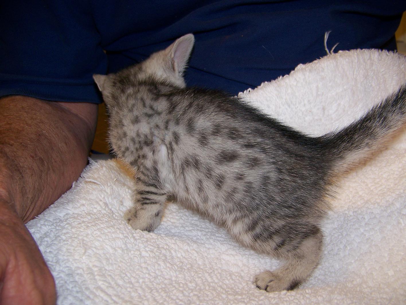 Shown here at 2 weeks this silver female Egyptain Mau is under contract to Joe and Sharon in Maryland