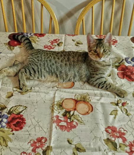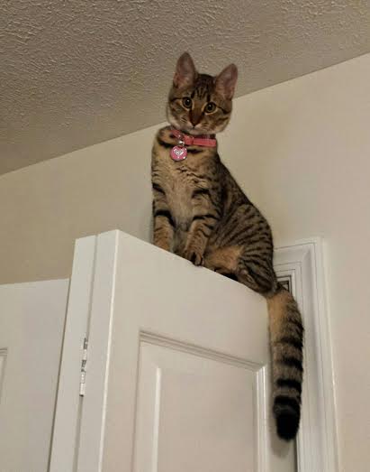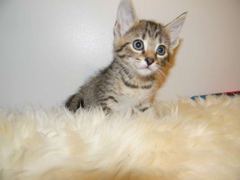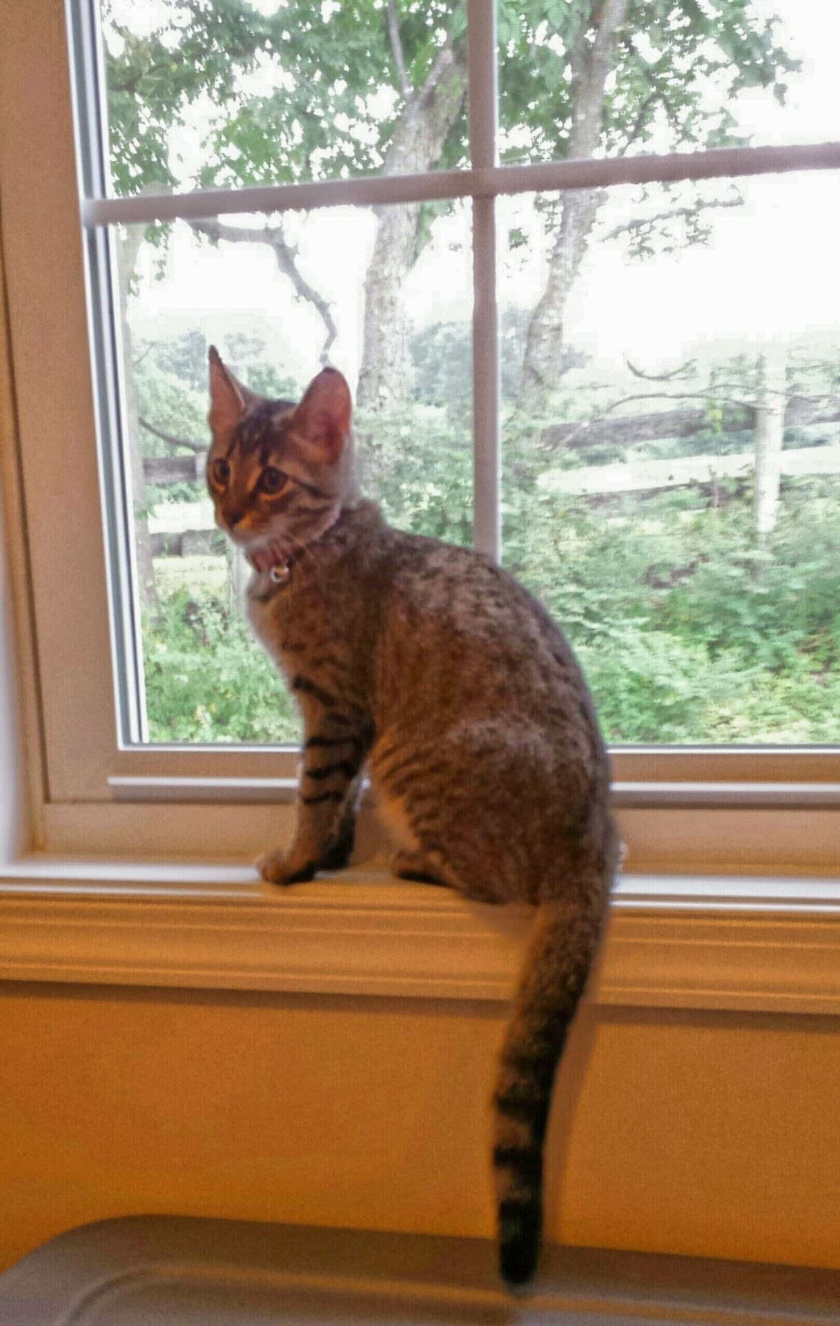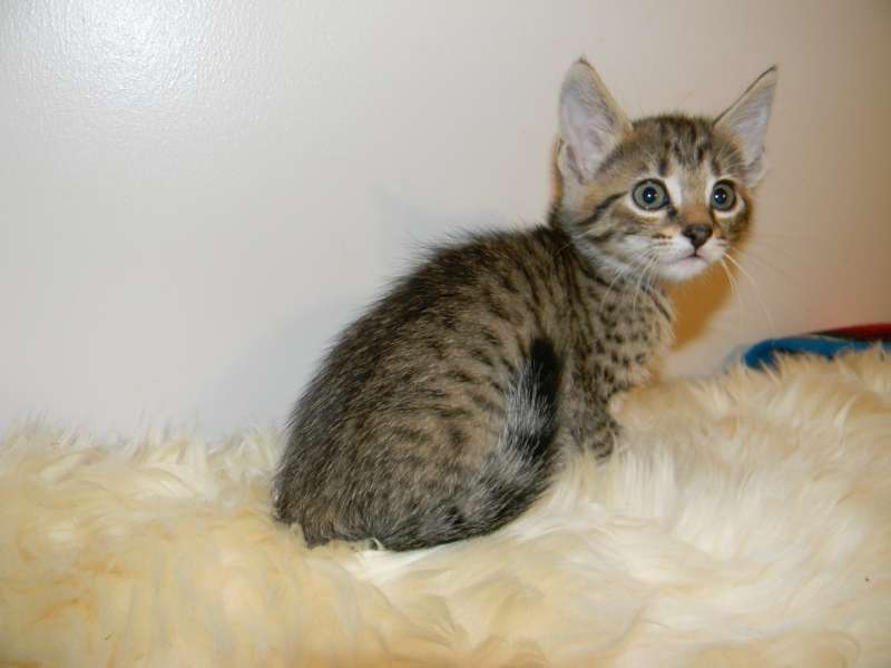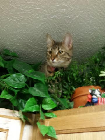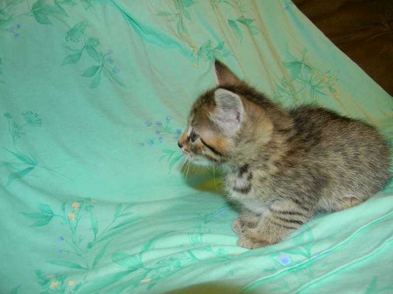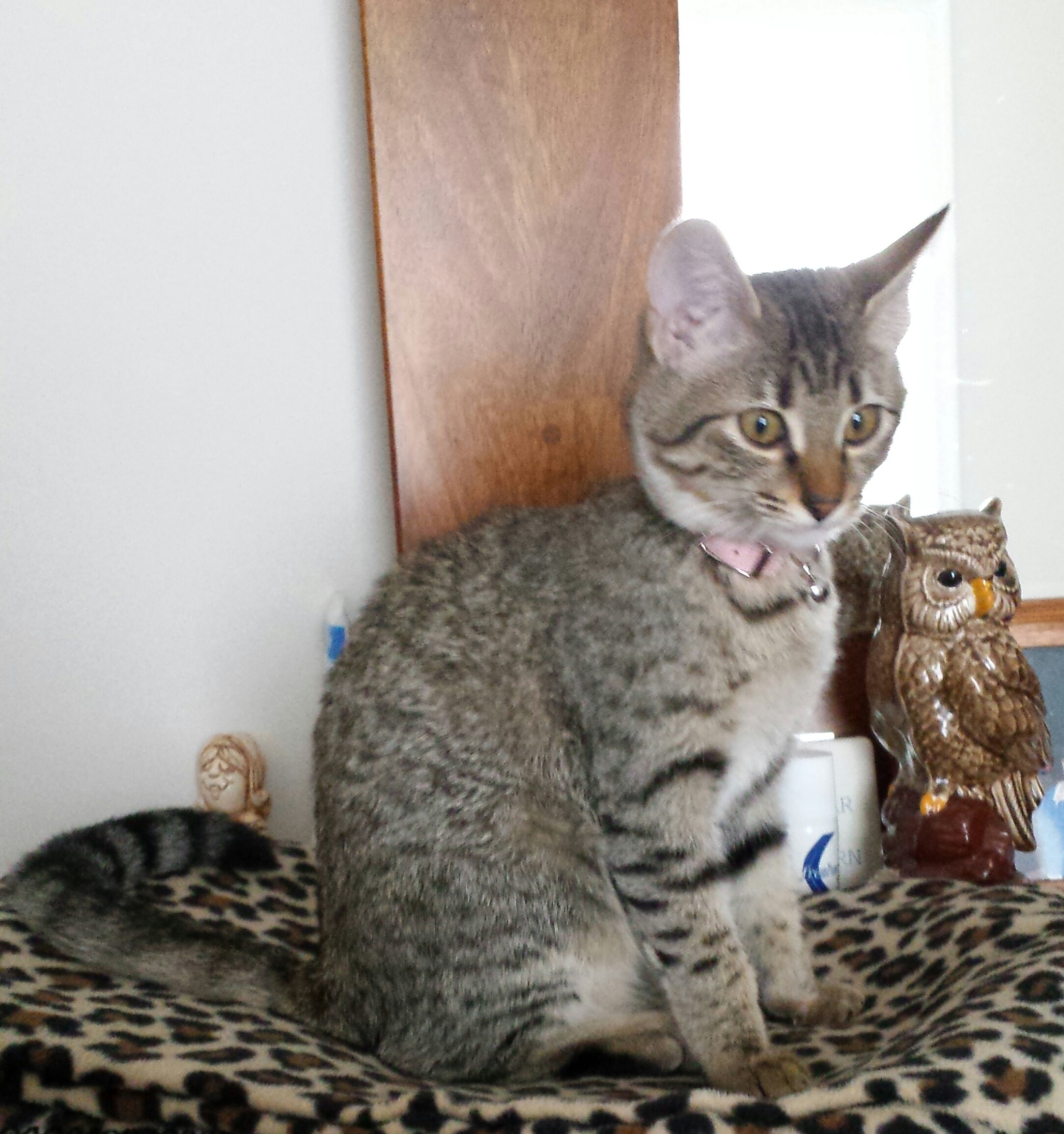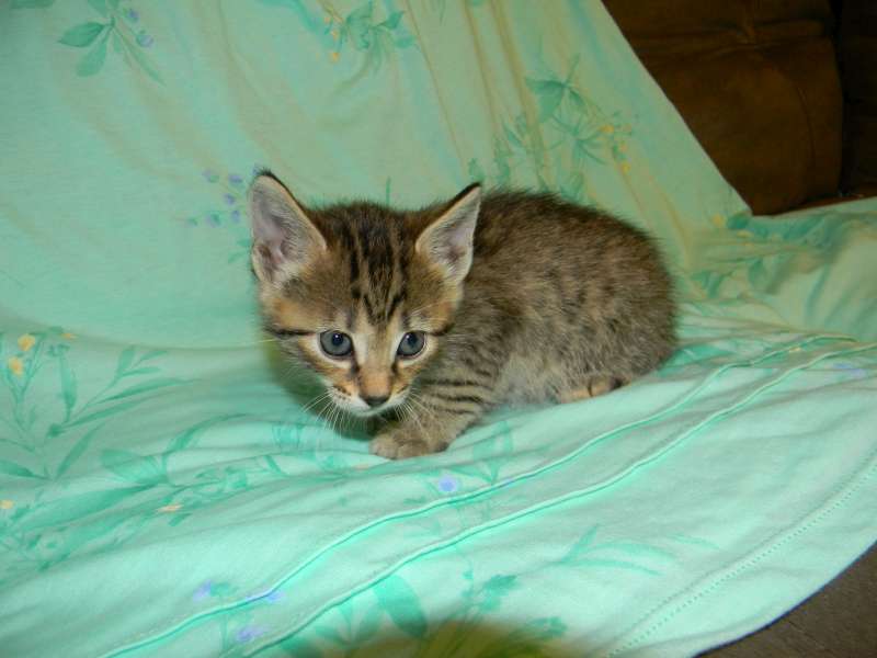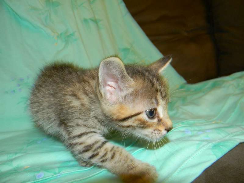 Starting to explore, it will be hard to catch this sweet brown Spotted Tabby girl for pictures pretty soon.