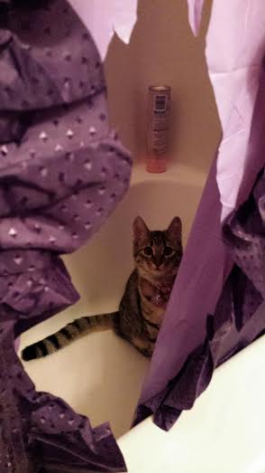 She's getting more comfortable with her surroundings because she only goes into the carrier to wrestle with the teddy bear! I have her in my bedroom with all of the doors closed. I've been staying in my bedroom with her.