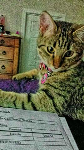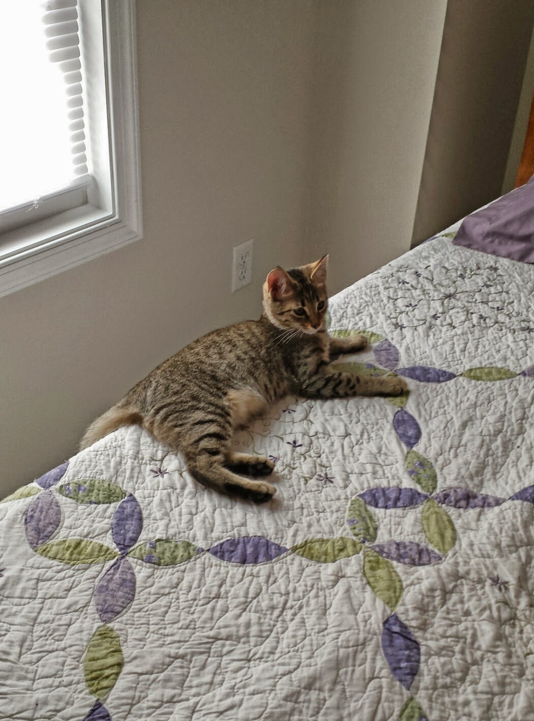 I'm trying really hard to not pick her up and kiss that beautiful little face all day long. When I do pick her up, she starts purring, which is music to my ears!