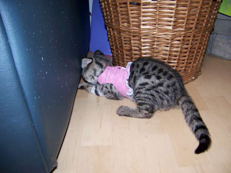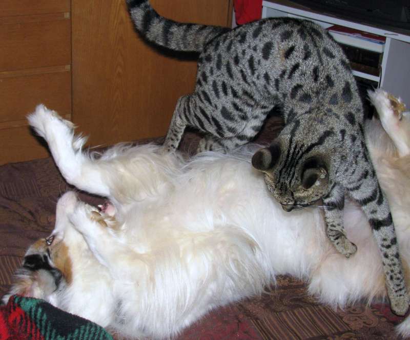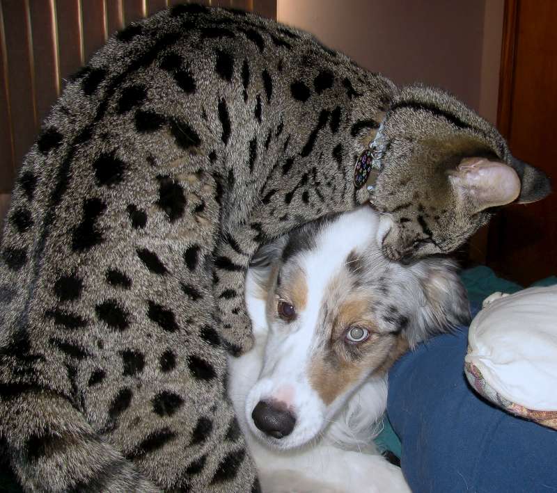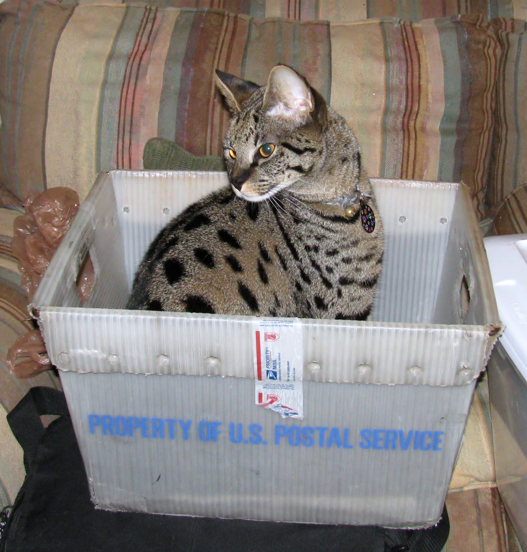 Nyah – F-1 SavannahF-1 Savannah Female born 3/22/09 living with Mark and Diane in North Carolina Nyah is pretty and pink in her ruffled harness! Nyah @ 3 1/2 weeks Nyah, F-1 Savannah, sports some really great spots! Nyah is growing and more beautiful every day! Nyah is fast asleep Too cute for words, Little Nyah is a lovely F-1 Savannah Girl Nyah loves her best friend Gunner. Nyah plays in Daddy's shoes! Nyah, F-1 Savannah female, likes to play in the tub Nyah and Gunner, her Australian Shepard brother, are great play mates! Nyah allows her brother Gunner to bath her but oh that dog breath! Nyah, F-1 Savannah, and her best cat friend Gandalf. Nyah says Mail me somewhere exotic! Nyah just can't seem to get her dog clean enough! [Show slideshow]