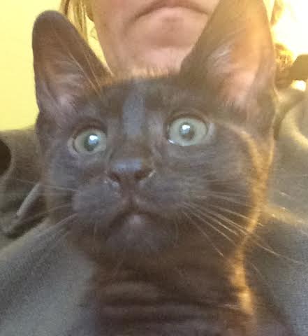 Dark and sultry smoke kittens are truely unique in the cat world, Black spots on a Black coat with a grey undercoat they retain their spots for life.Penelope will be going to live with Whitney and her family in CT.