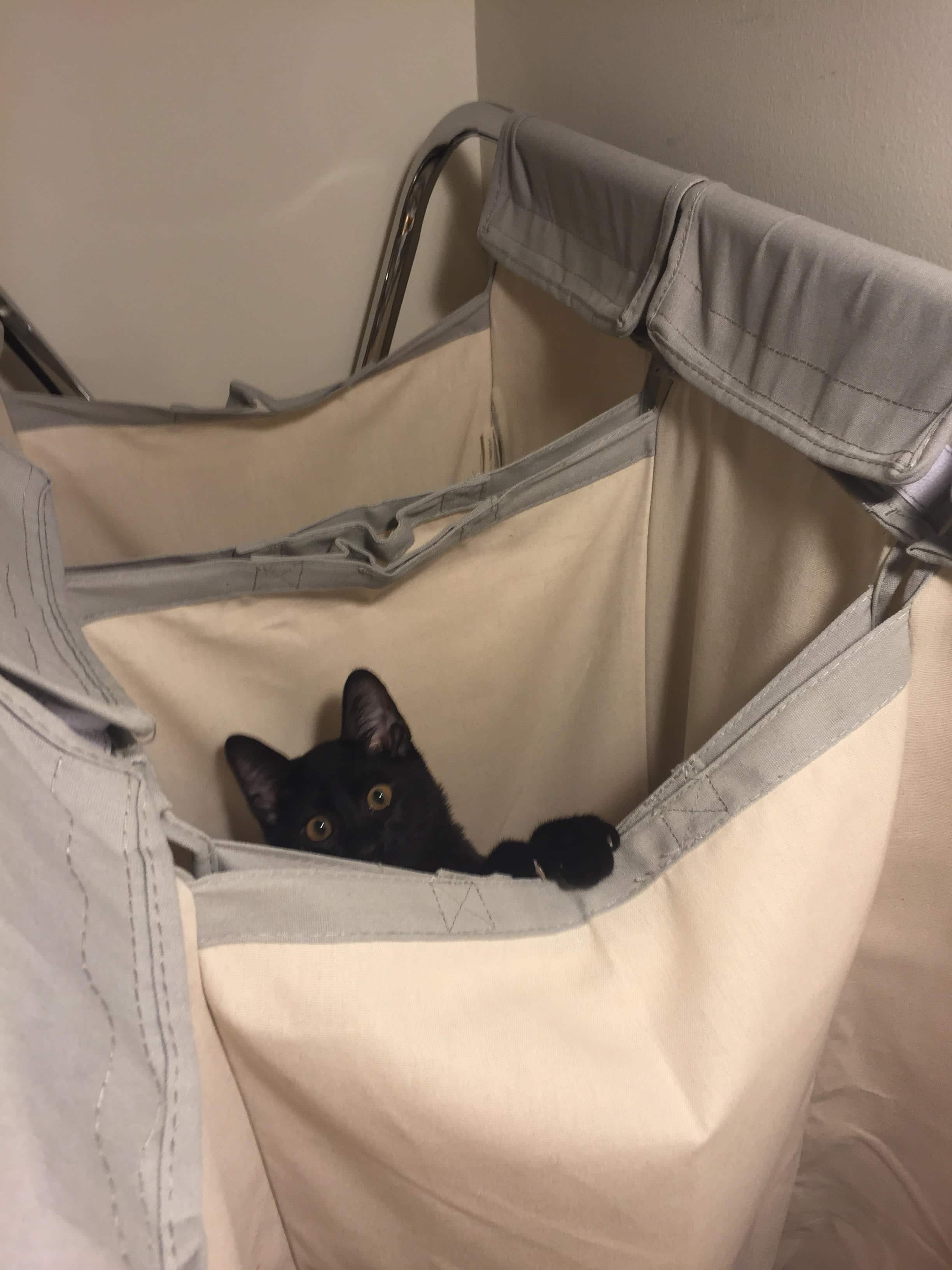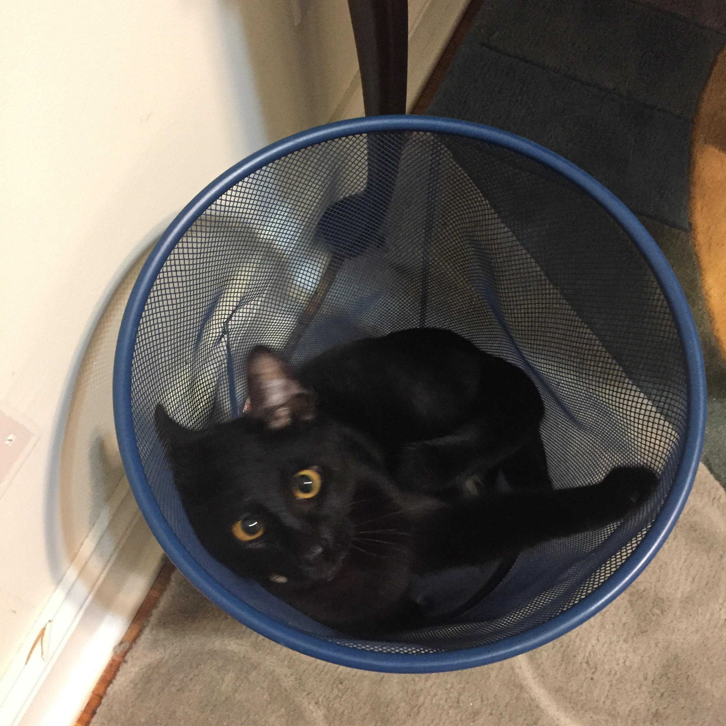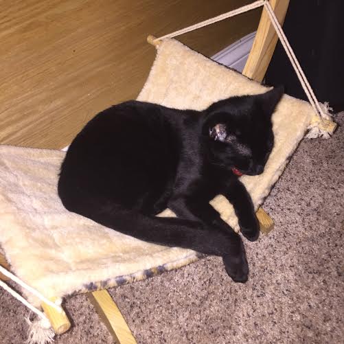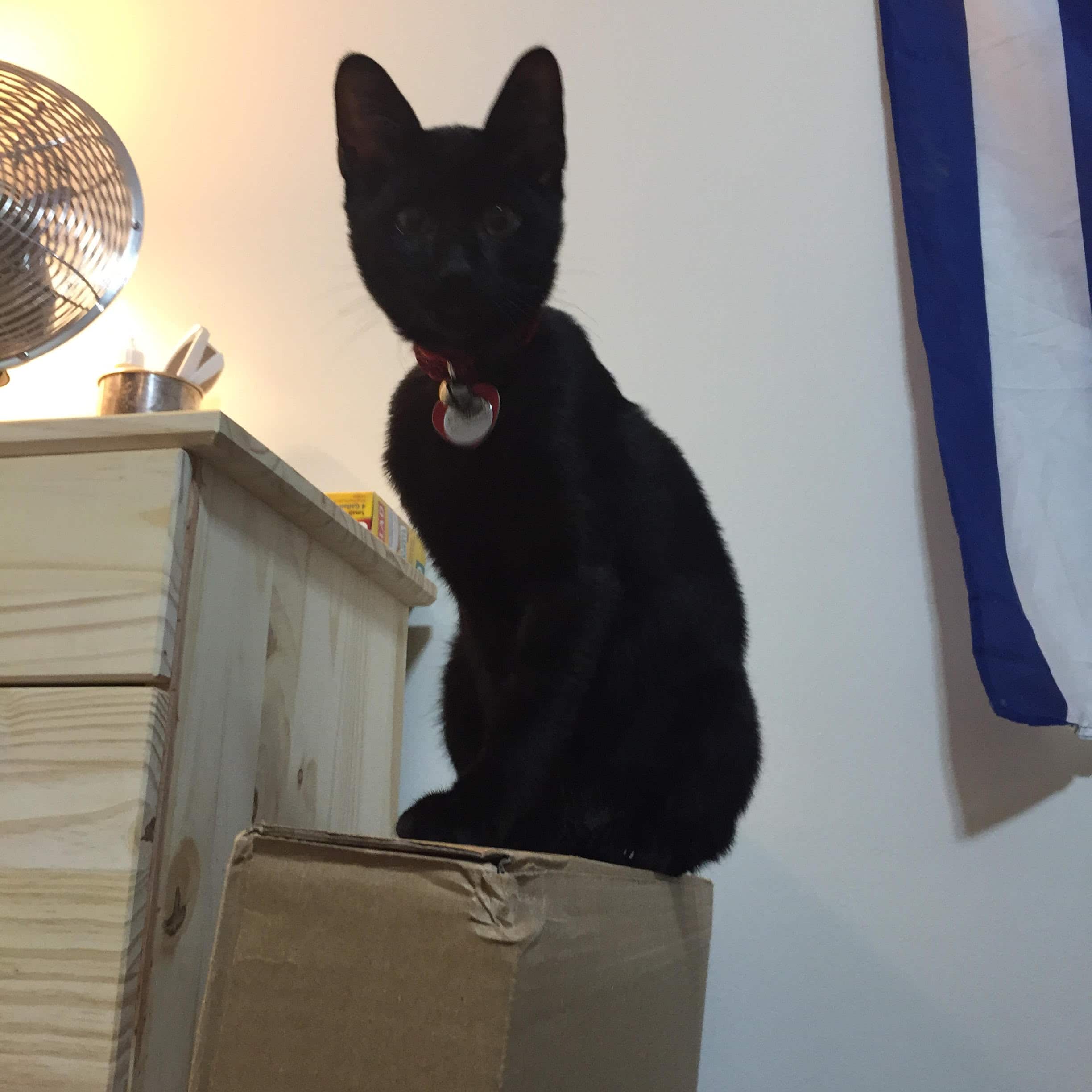 I attached an updated picture of the little guy when he jumped up on his scratching post! This image captures his personality. He's a little over 4 lbs now.