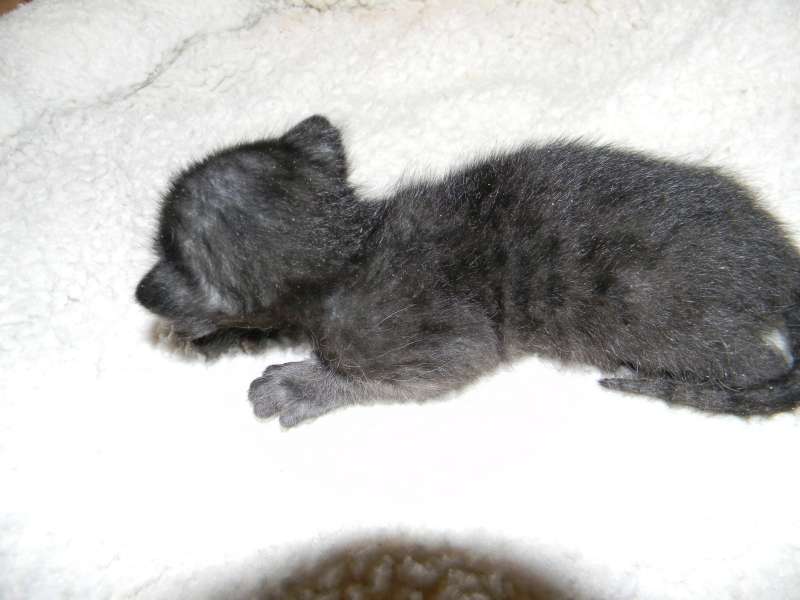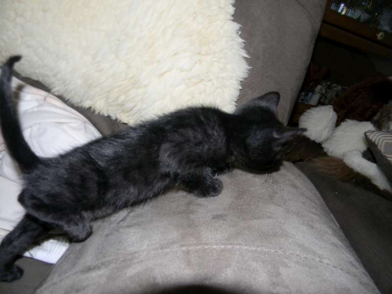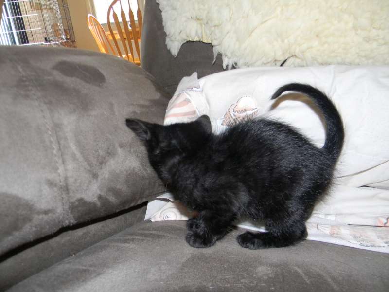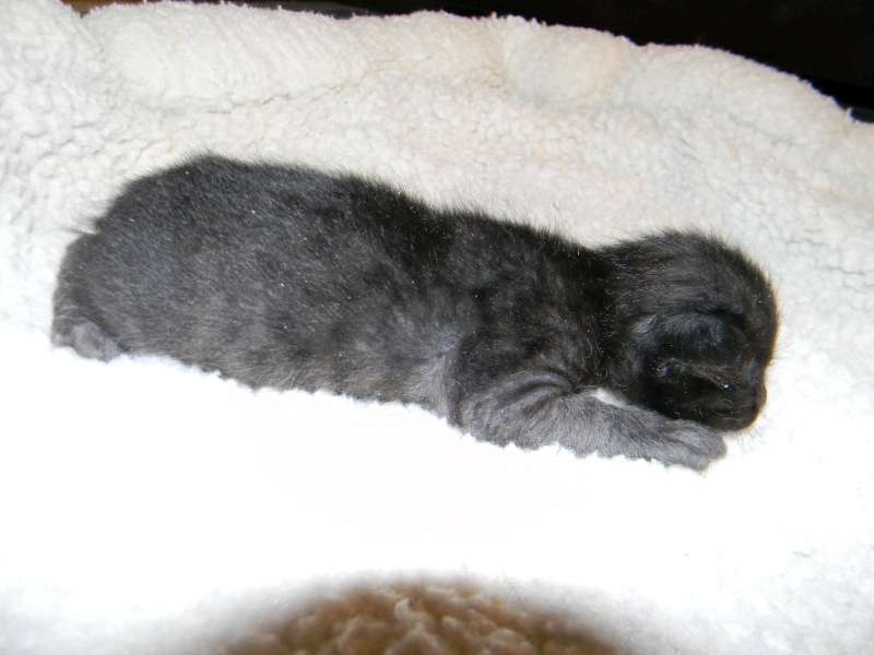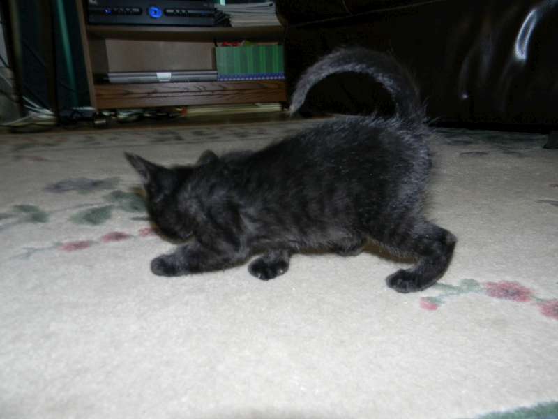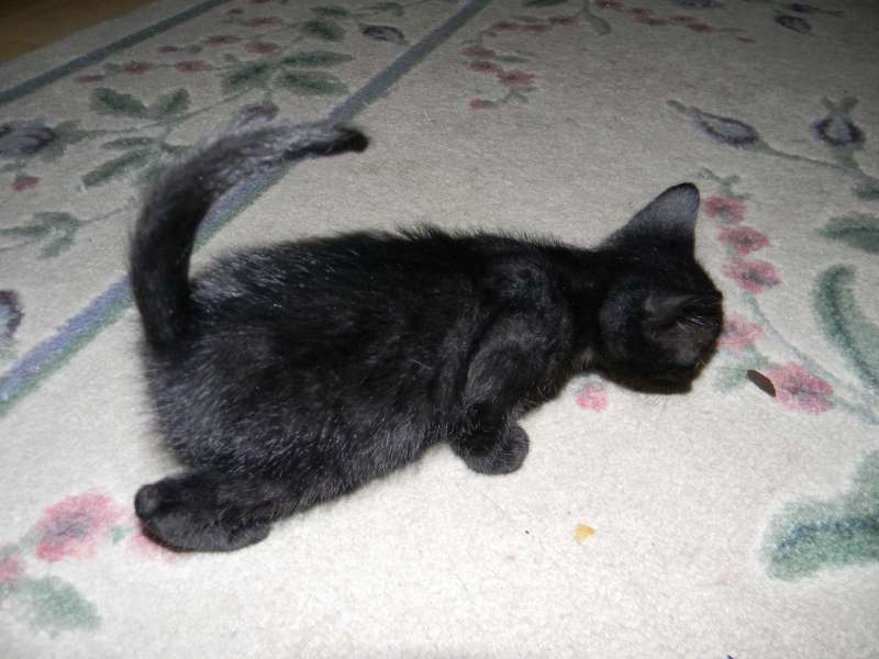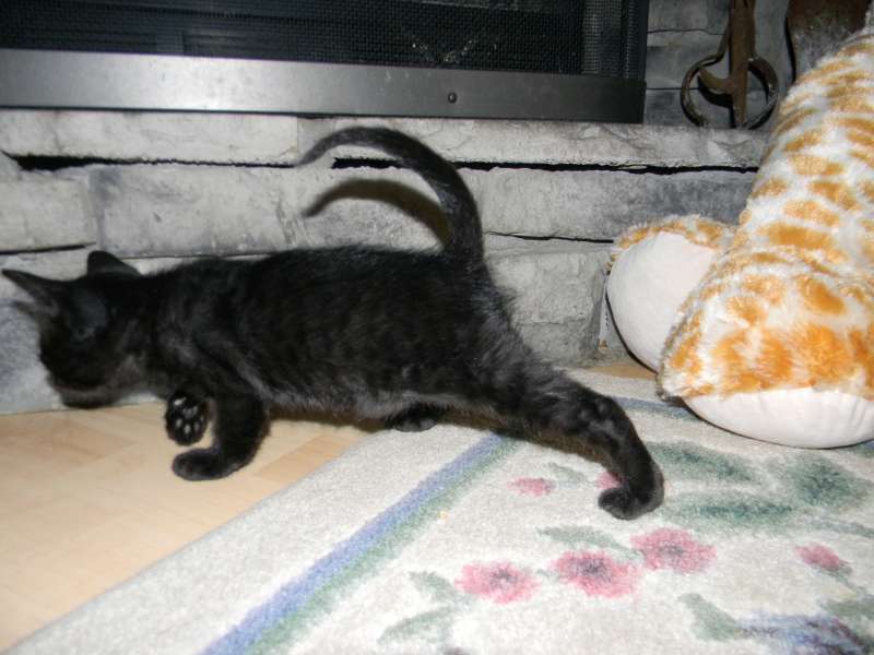 This precious black on black F-3C male kitten will be going home to Nick in IL where he will be treasured pet and companion.