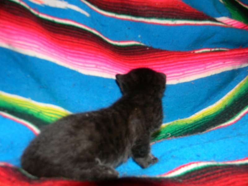 Riley Dark Smoke Egyptian Mau female DOB 6-10-15This beautiful little girl mau is going home to Brian and his wife who are prior Mau owners. Tiny now Riley will be a stunning adult Smoke is a color unique to just a few breeds of cats. Dark grey undercoat with black hair tips and black spots this girl will be beautiful. You can see her spots in this shot She is just too cute now as she begins to explore a little. [Show slideshow]