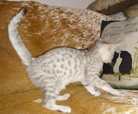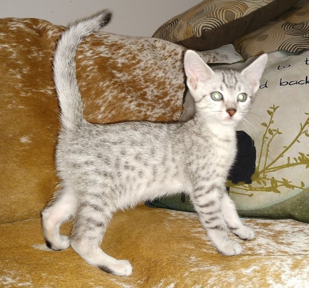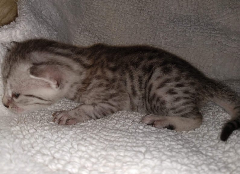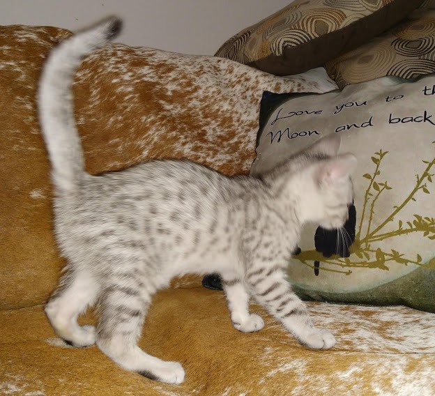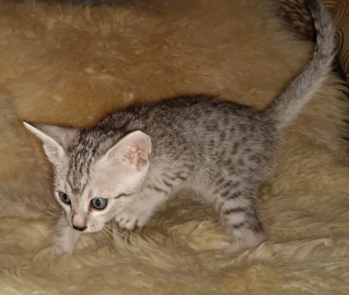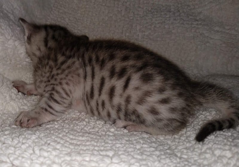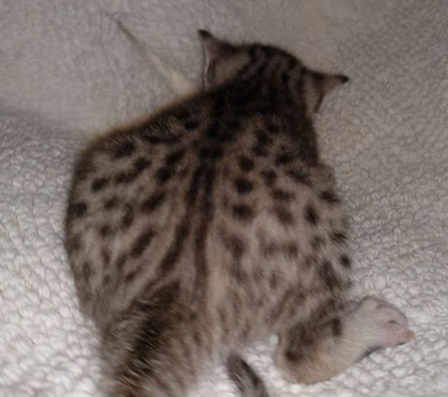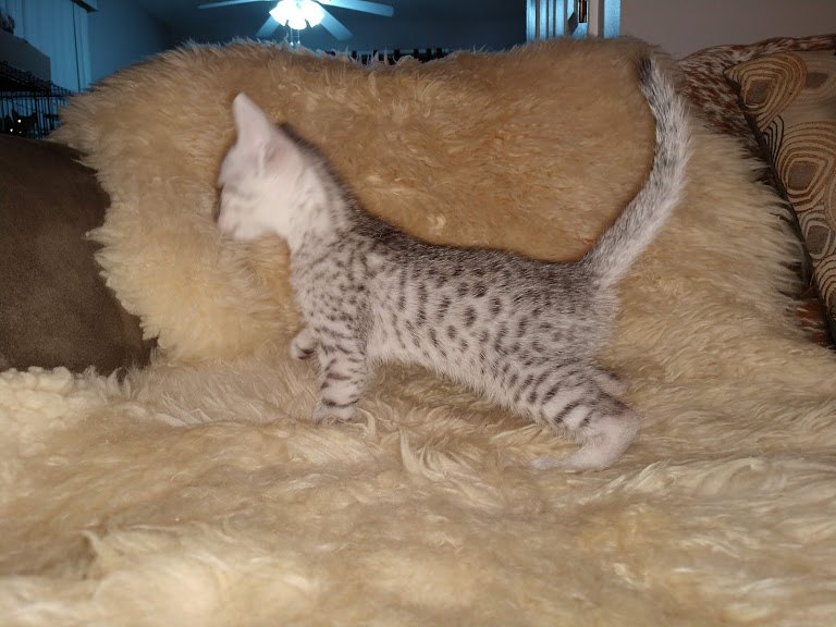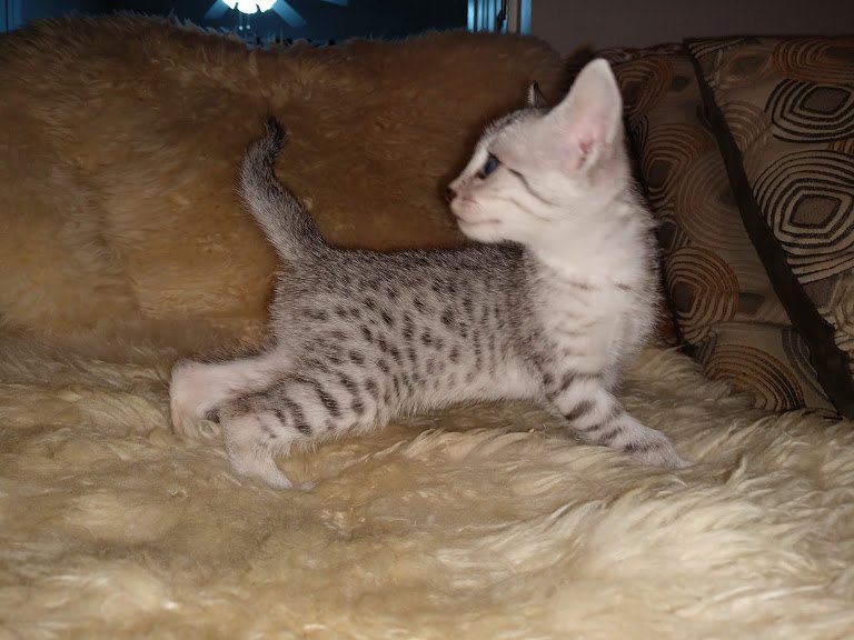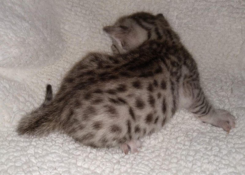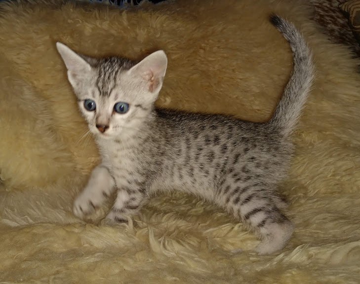 Rumi Egyptian Mau, Silver, Male, DOB 8-17-20Clear coated at birth this guy will be going home to Robyn in NY as her newest companion. [Show slideshow]