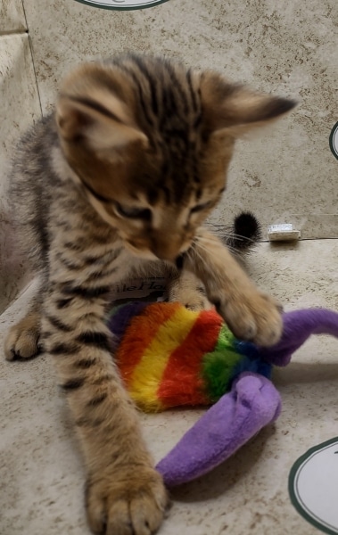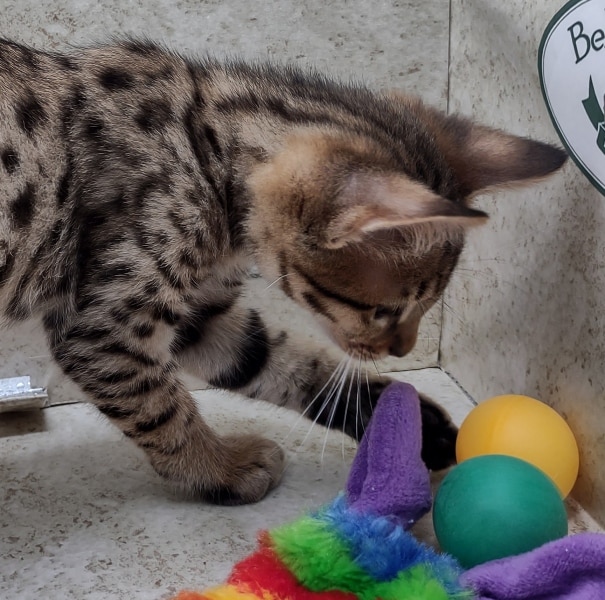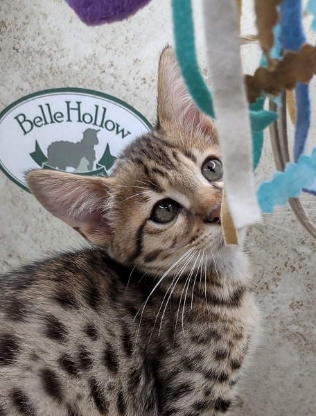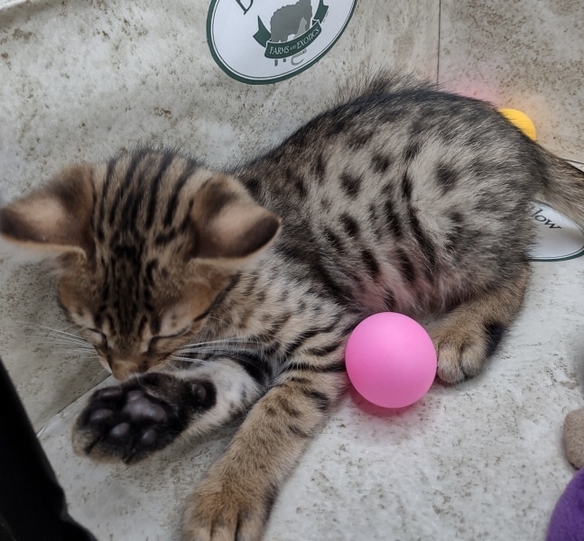 Savannah F-3C Brown Spotted male #1 DOB 5/12/22Just too cute this F-3C savannah boy will grow to a beautifully spotted couch leopard and loving high energy companion for Ben and his family in TX. [Show slideshow]1 2 ►