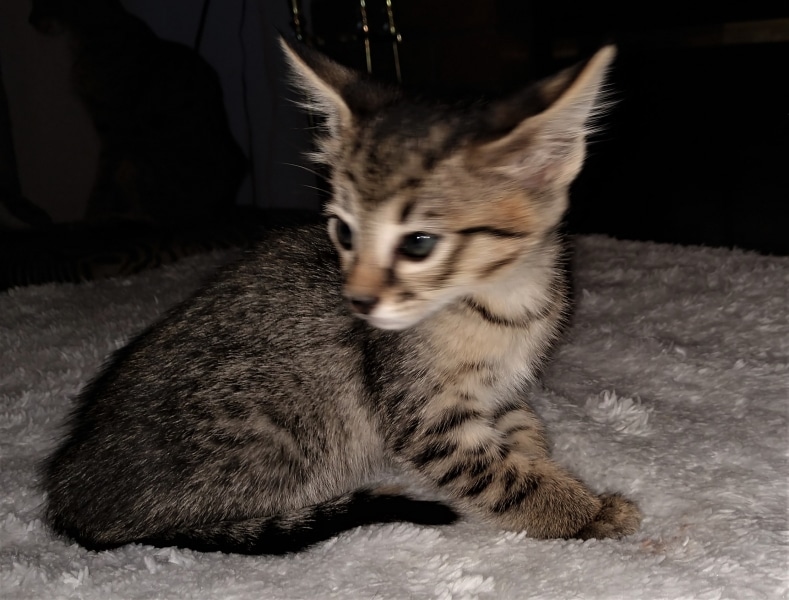 Savannah F-3C BST female DOB 4-17-20This precious F-3C savannah girl will be a stunning adult and a great BFF for some lucky family. He will be home to Cortney and family in MI. [Show slideshow]1 2 ►