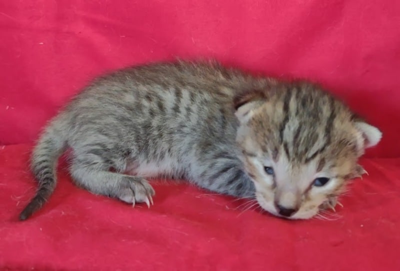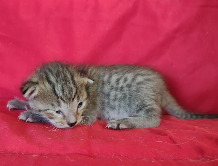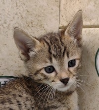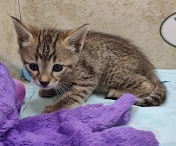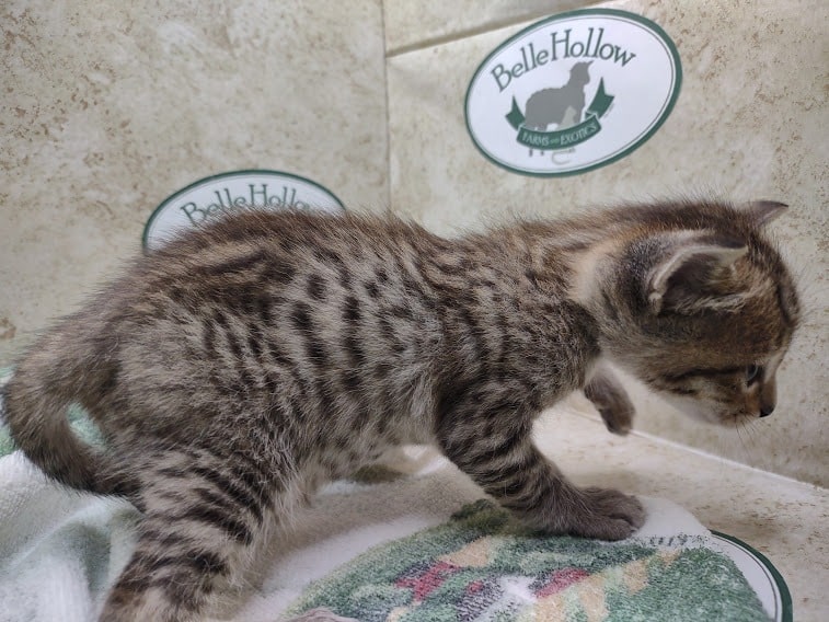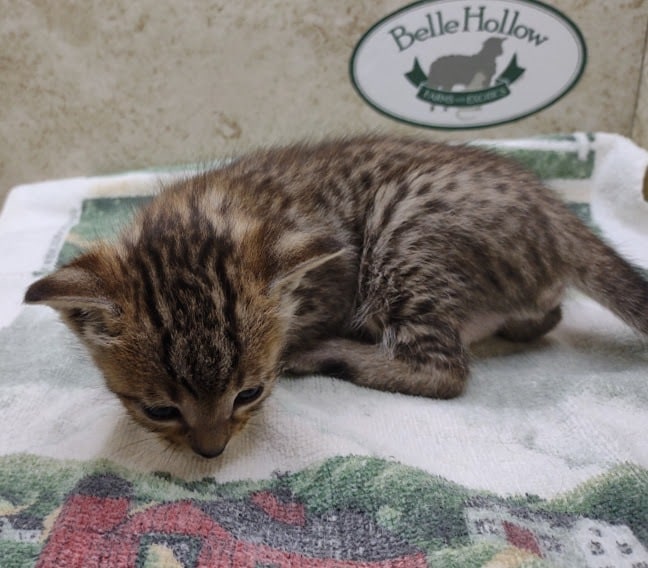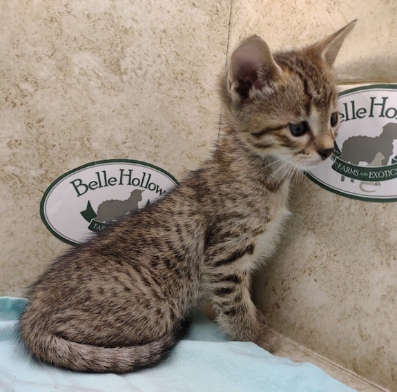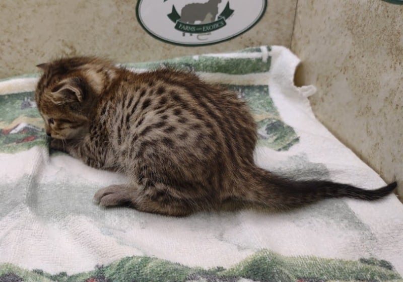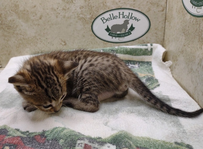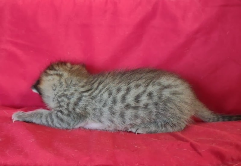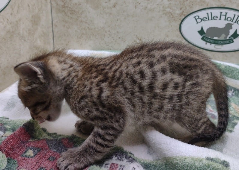 Savannah F-4SBT Brown spotted Male DOB 4-10-23Such a sweet F-4SBT Cool Brown Spotted baby boy. He has lovely spots and will be a loving companion to John and his wife in NC. [Show slideshow]1 2 ►