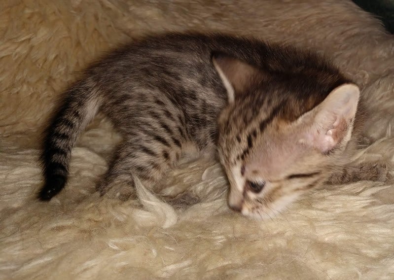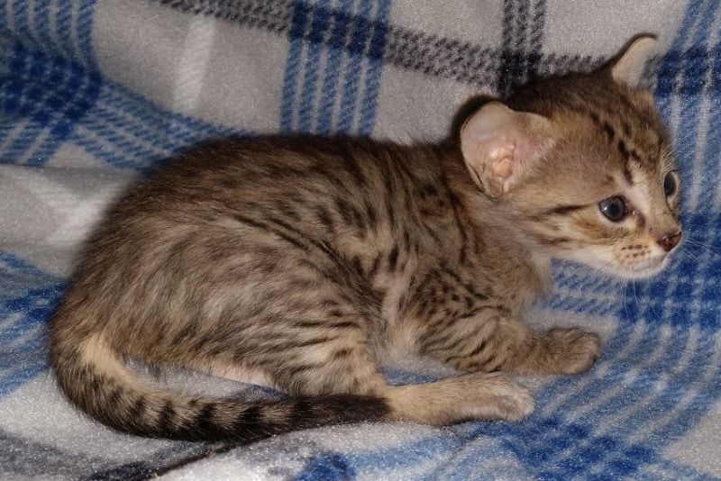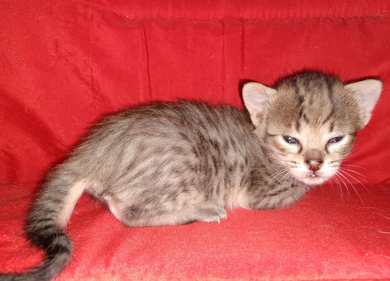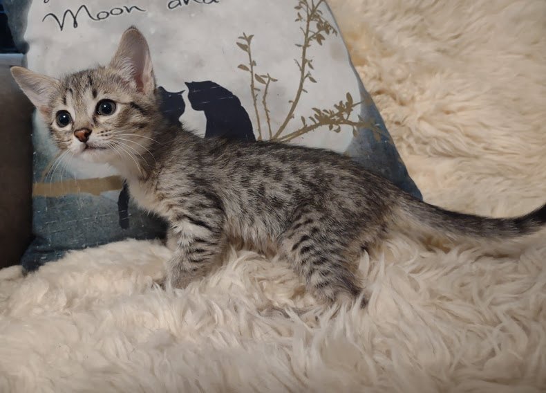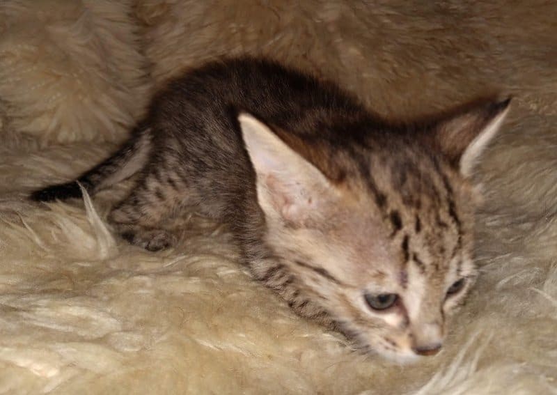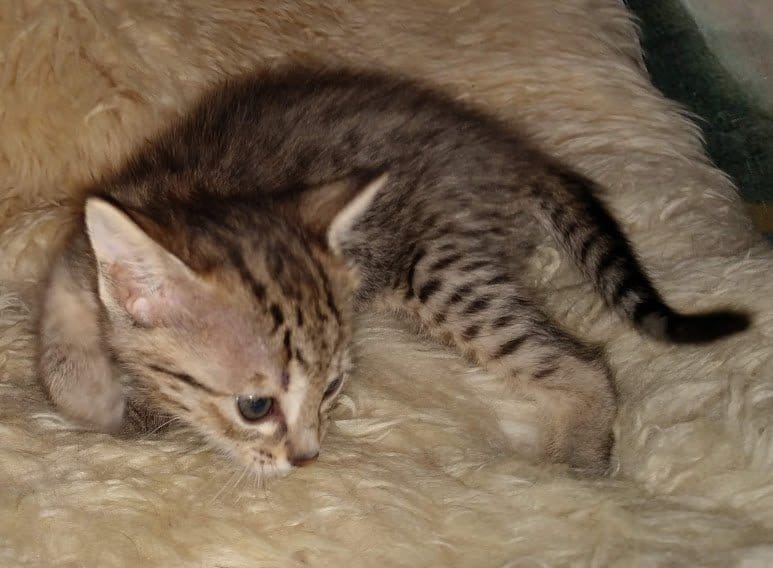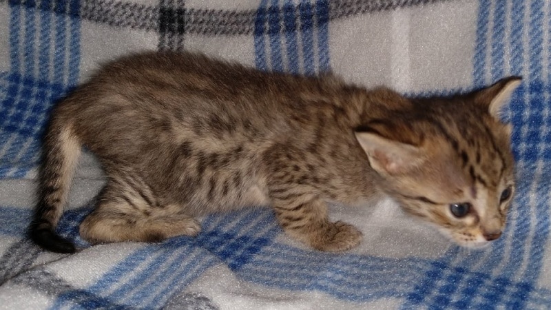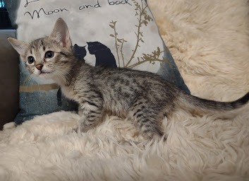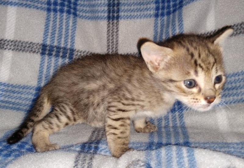 Savannah F-4SBT Female Cool BST DOB 4-11-21This beautiful F-4SBT savannah girl will make someone and exceptional pet and Best Buddy. She get better every time I take new pics. She will be stunning and is going home with her sister/littermate Cinnamon to Sam in KY. [Show slideshow]1 2 ►