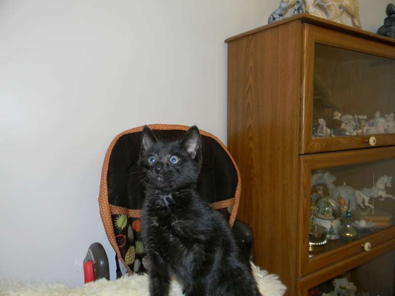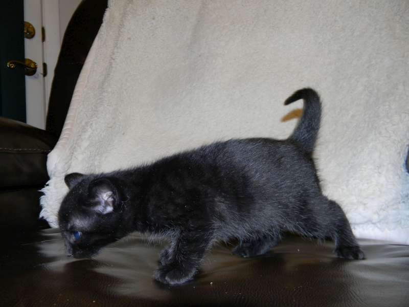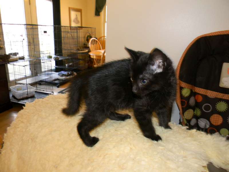 Savannah F-6A Black on Black male #1 DOB 10-20-14This stunning very dark black smoke boy has gone home with Al to SC where he will be a beloved pet and companion. This is a very special little lump of coal! gotta love that short fat tail. Busy Busy Busy Checking out his world. Gotta love a black smoke face Pretty boy He real seems to like his photo shoot! Real nice ghost spotting on this boy From his Dad "I went and bought him a lot of toys." A scratching cardboard, food, and a fountain with filters He was great at the vet. Whenever his leash comes in ill send you a picture of him with it on also. He is real playful and a lot like my german shepherd personality wise so I think they will like each other. [Show slideshow]