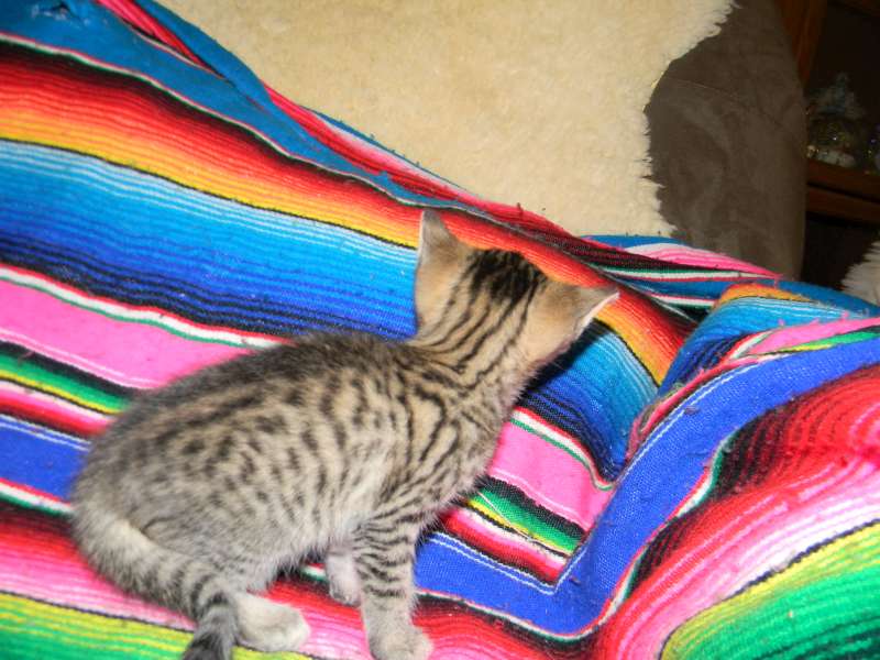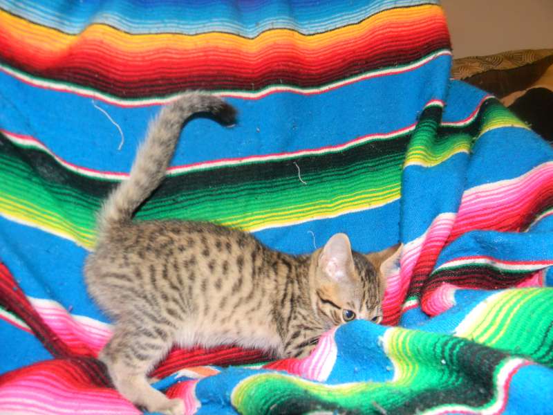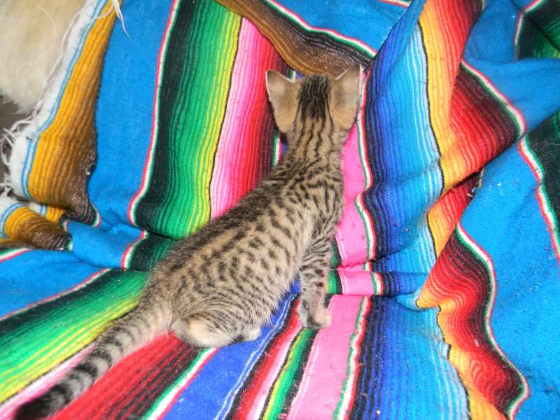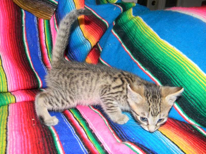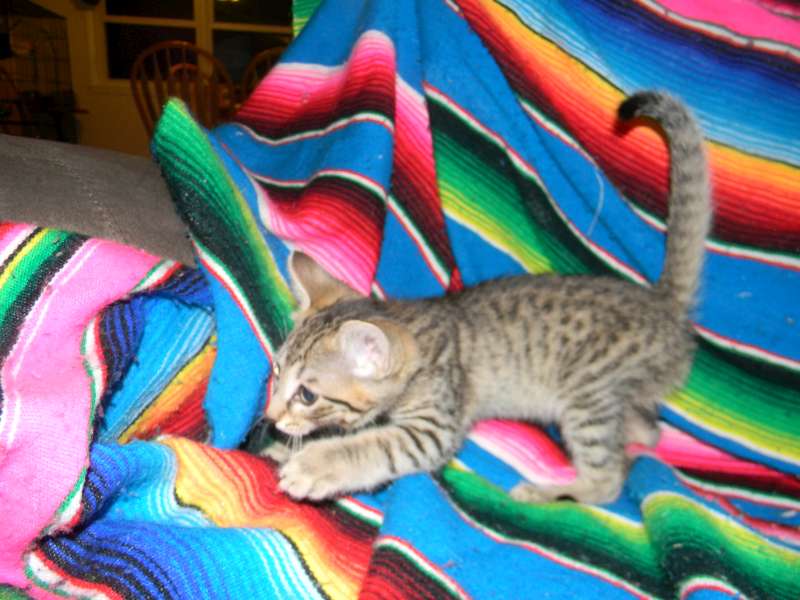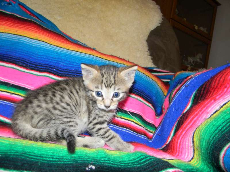 Savannah F-6A Brown Spotted male DOB 10-15-15This precious Brown Spotted boy is a single kitten and the apple of his mothers eye. He is super confident and full of himself. He will make a super pet along with his 1/2 sibling Savannah Zeeva for Pam in AL. [Show slideshow]1 2 ►