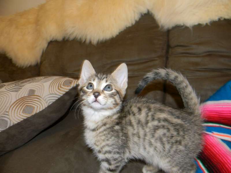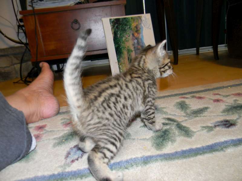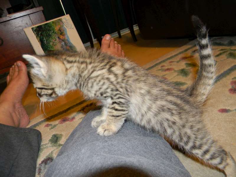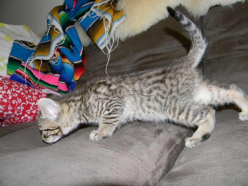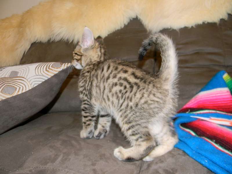 Savannah F-6A male #2 Brown Spotted Swirl on hip black nose DOB 10-2-14