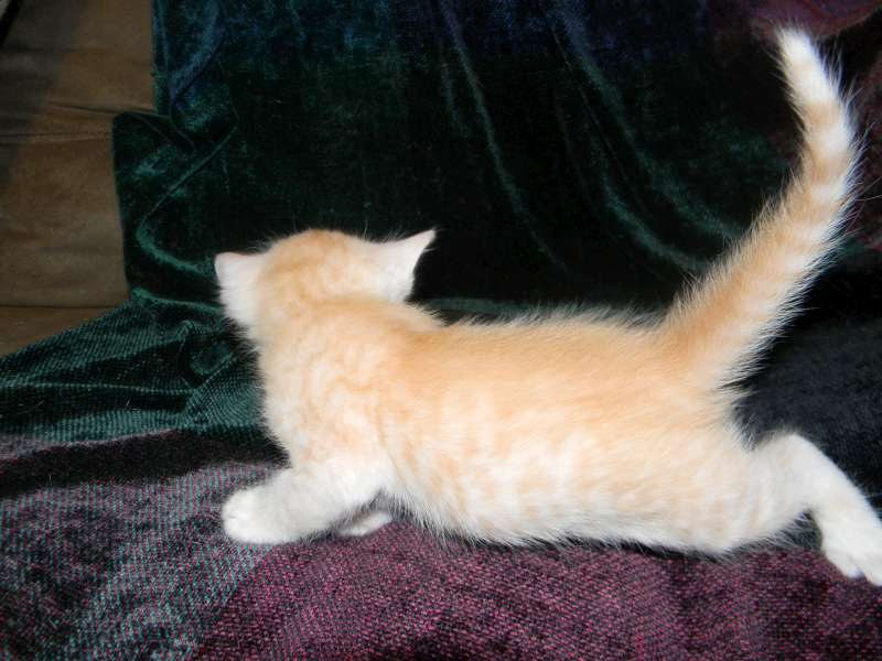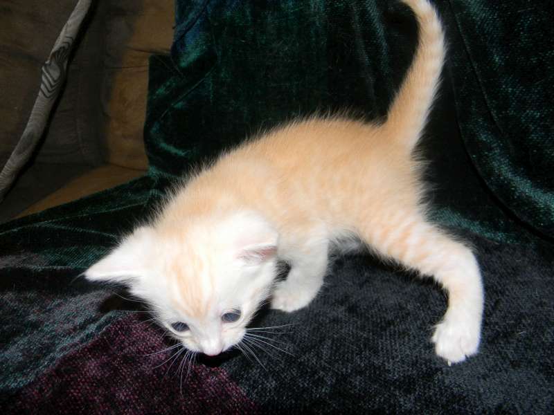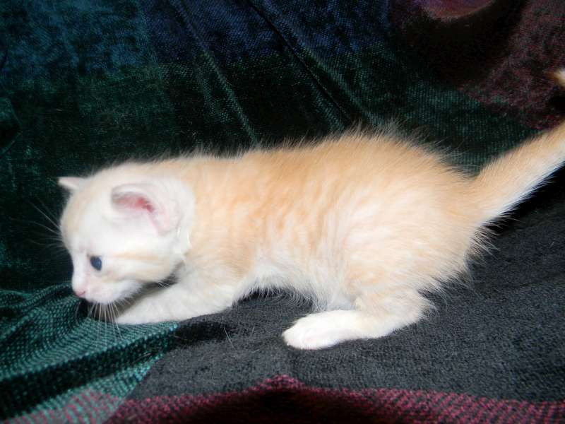 Savannah F-6B Cream Spotted Male DOB 2-19-16Griffin is a very unusual cream colored boy. He is the color of a creamcicle with spots! He will grow into a stunning adult and excellent companion for Christy and family. [Show slideshow]1 2 ►