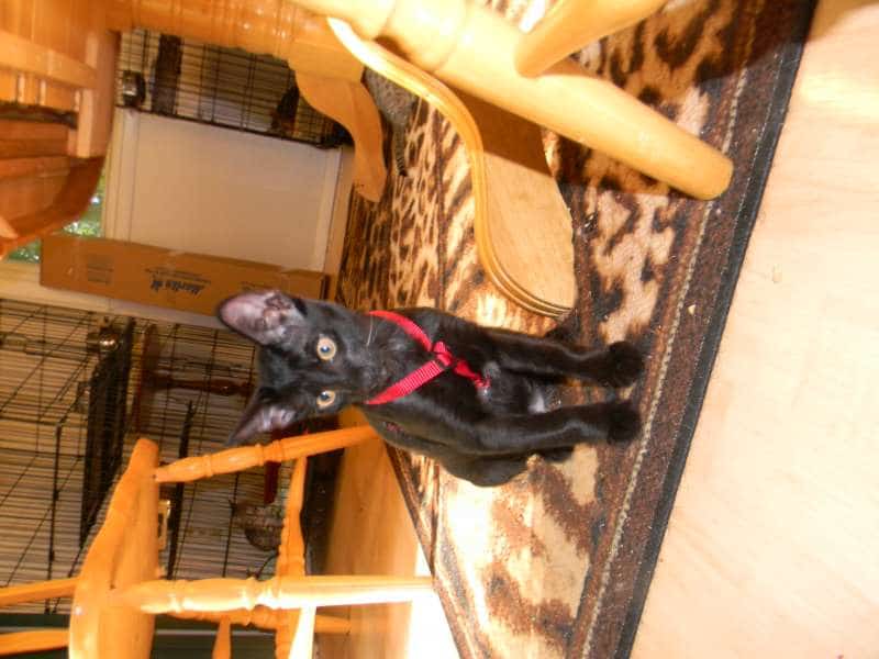 Savannah F-6B Male Mel with Ghost spots DOB 4/16/15This precious little Black on Black boy with Ghost spots and white tummy locket is going home with Jessica. [Show slideshow]1 2 ►
