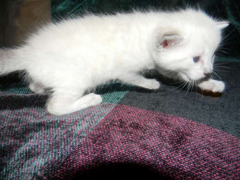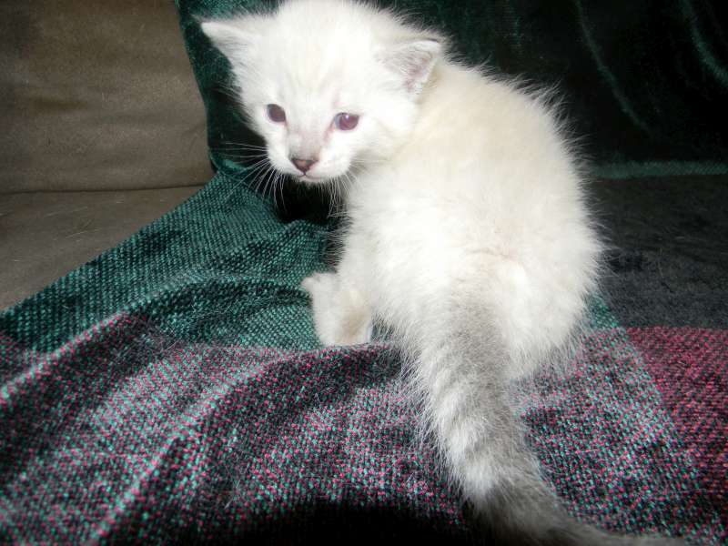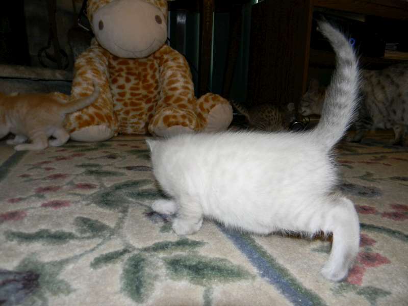 Savannah F-6B Snow Male DOB 2-21-16This beautiful little snow Savannah Male will grow into the most unusual of savannahs with color points like a Siamese but the spots of the true savannah he is. He will be going to live with Carolina and Rosemary in NC [Show slideshow]1 2 ►