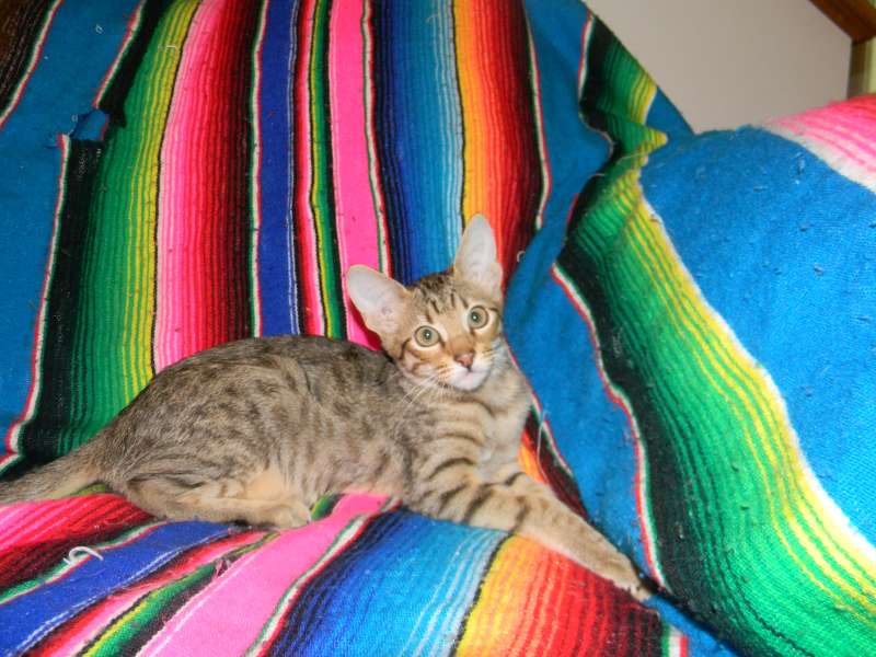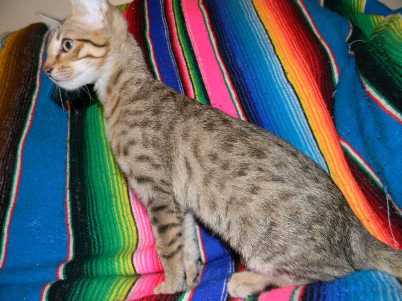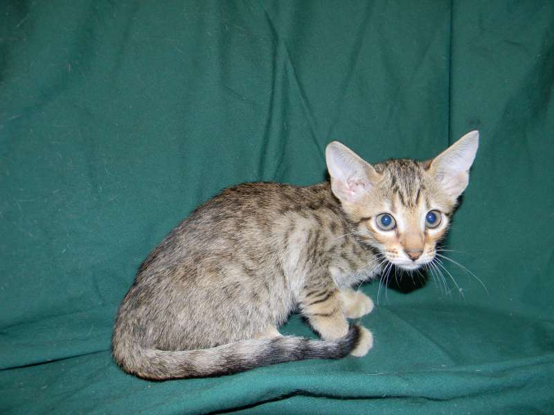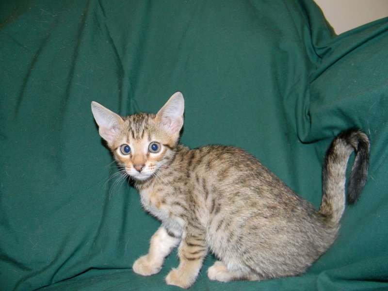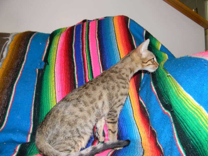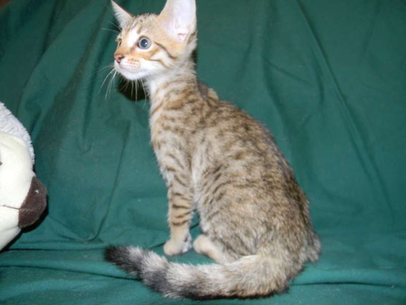 This lovely Brown Spotted Savannah girl has a lovely buttery color with black spots. From Truffles (F-5SBT) and Triumph(F-7C) she will make a stunning pet or super queen for Jackson in VA