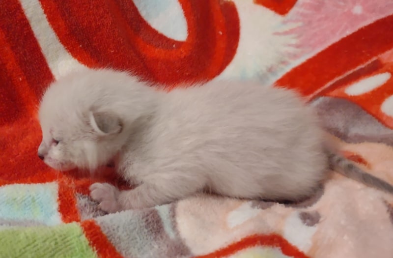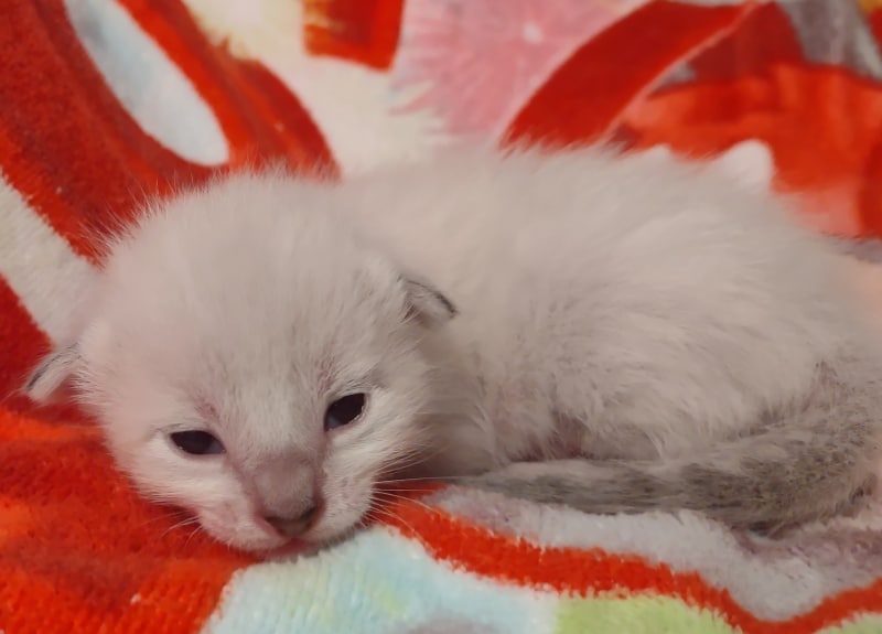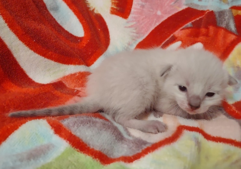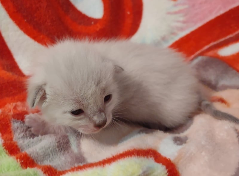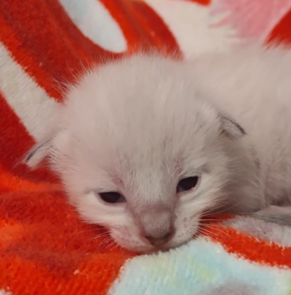 Savannah F-6SBT Snow Male #1 DOB 5-29-22This precious Snow Savannah boy will be a very exotic looking adult when his color and spots come in. Born white Snow savannahs like Siamese cats are born white and develop color as they grow. He will be going home with Sara in NC [Show slideshow]