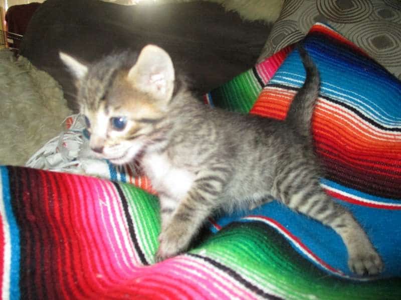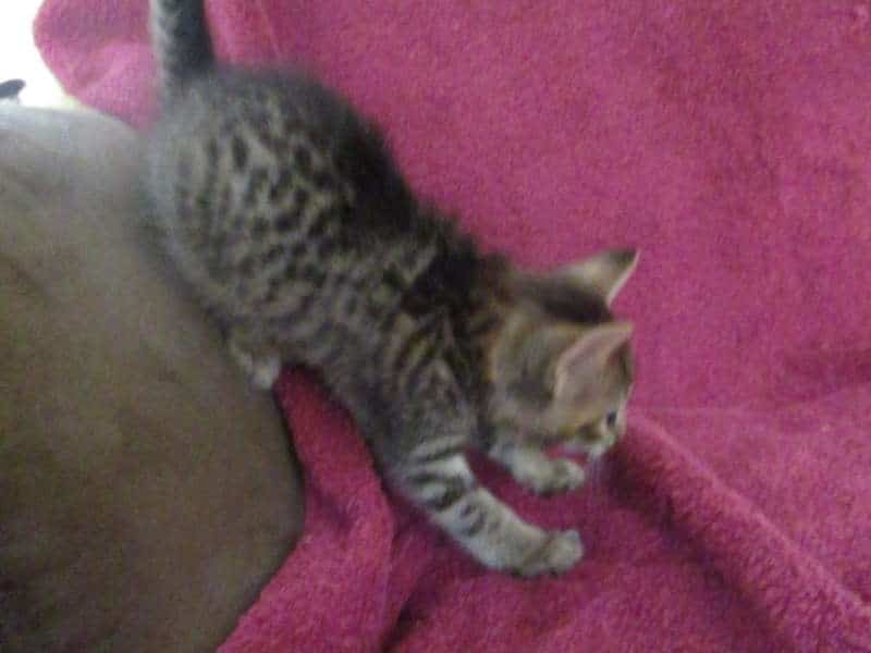 Savannah, F-7B Brown Spotted female DOB 9-11-18If you are looking for a wonderfully spotted savannah kitten , here's your girl. Great spots but more important a sweet and friendly outgoing personality. She will be going home with Robert and Family in SC. [Show slideshow]1 2 ►