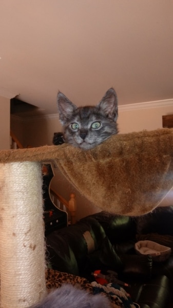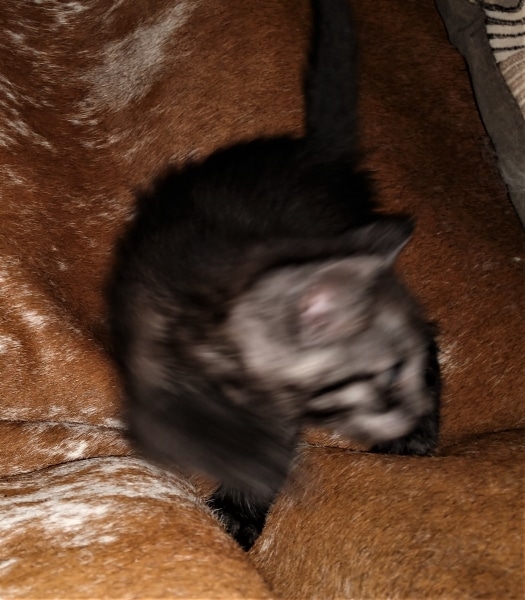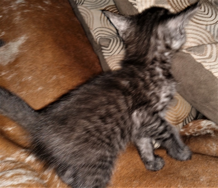 Savannah F-7B Smoke spotted male DOB 2-11-20Dark and Sultry this beautiful F-7B smoke savannah boy will be a stunning adult. The dark feeling of a black cat but with visible spots. He will make a fabulous pet and exotic looking companion for Paige in SC. [Show slideshow]1 2 ►