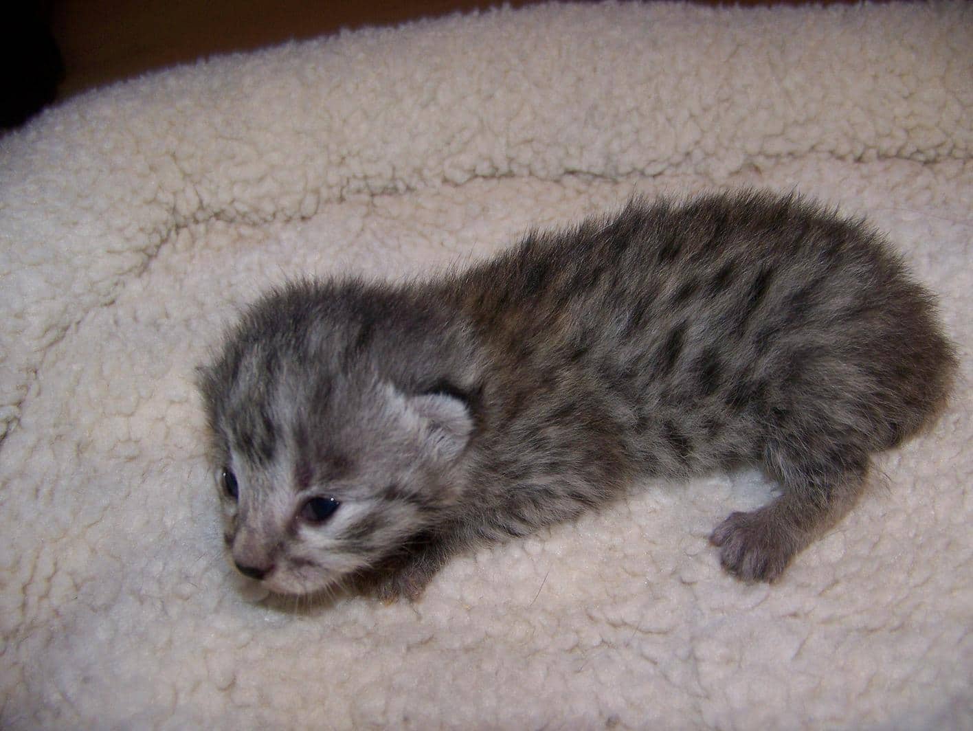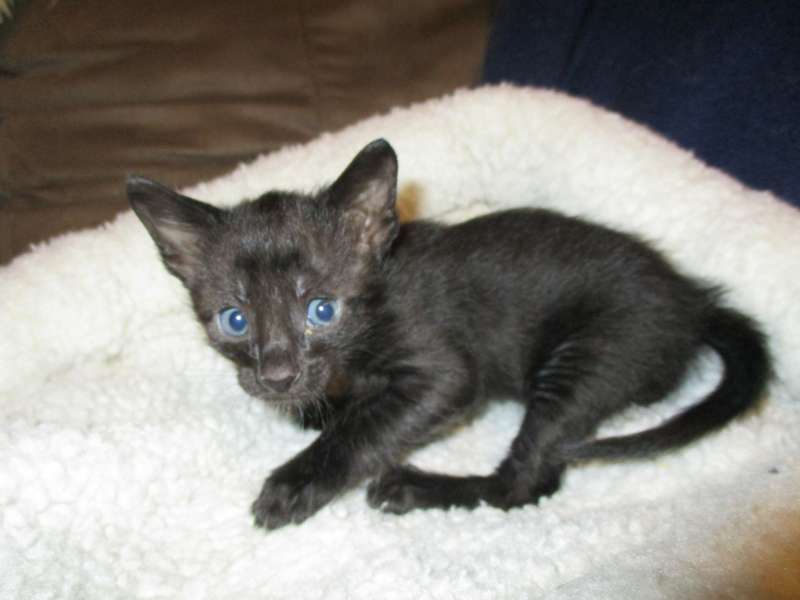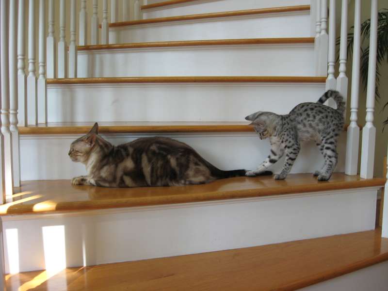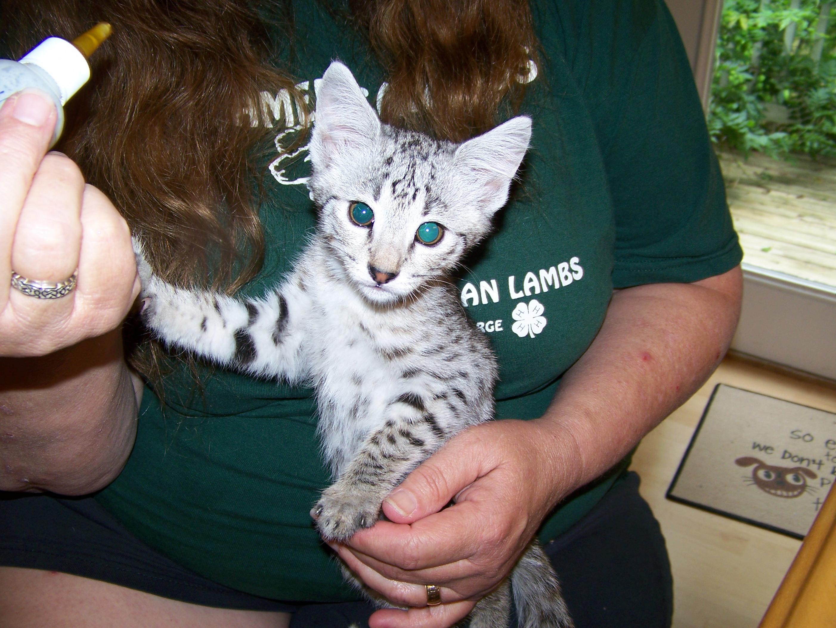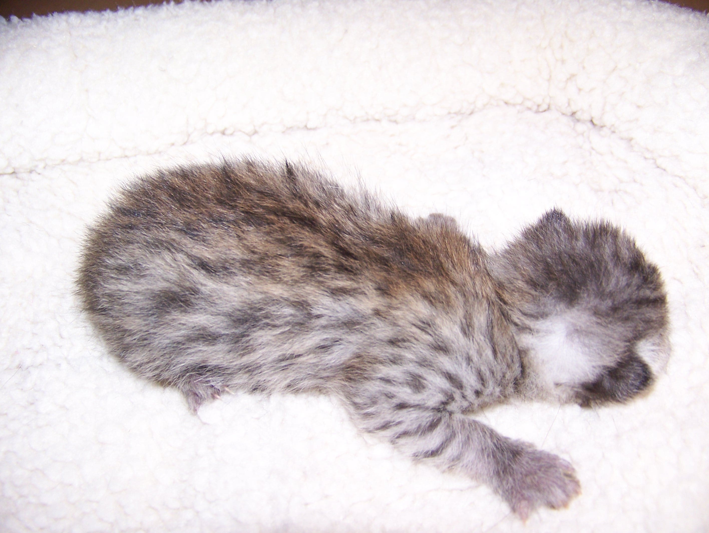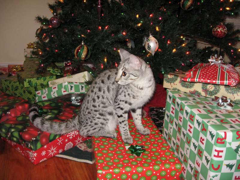 With her angelic face Sheikra ( formerly Nipper) an F-2 Savannah female black/brown spotted tabby will have golden highlights in her cool colored coat and a great black spot pattern She has gone to live with Susan and her family in Florida.