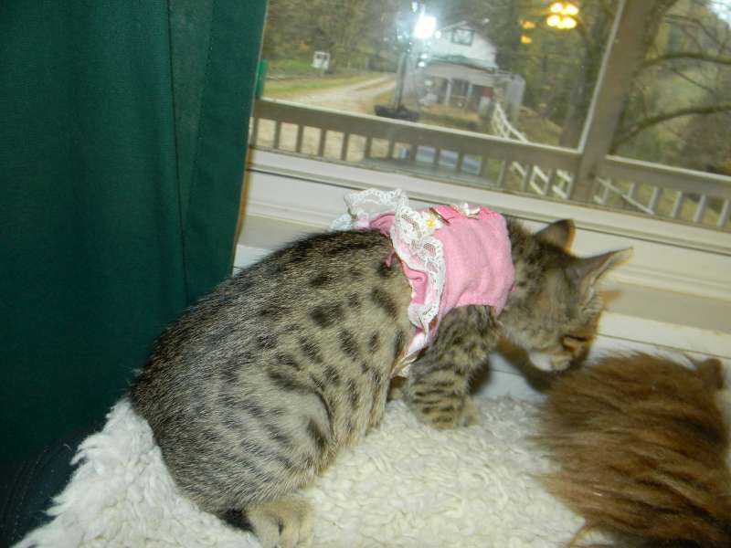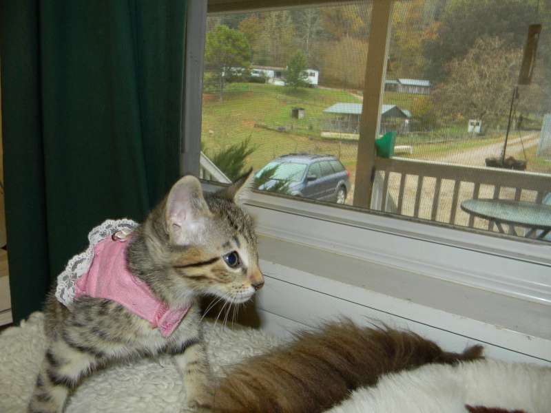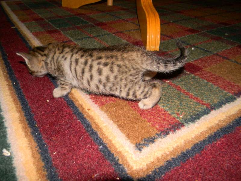 This precious angel and her brother will be going to be new roomates for Mitch in NC. Out of BB ( Melanistic Exp. SH) and Truffles (F-6 SBT Brown Spotted Savannah) Skyler is sure to have beautiful color as well as a winning personality.
