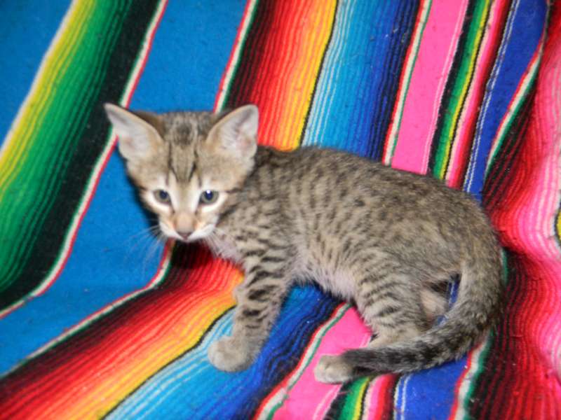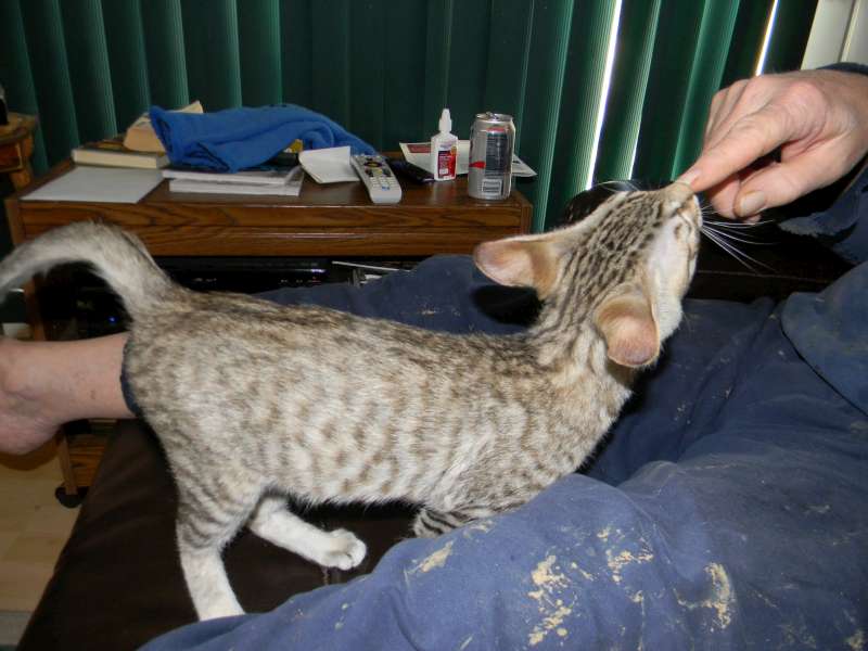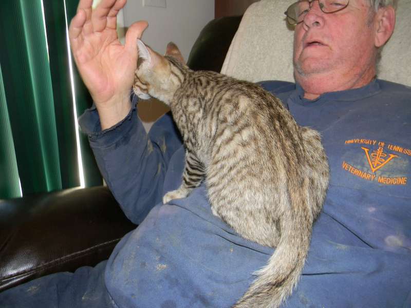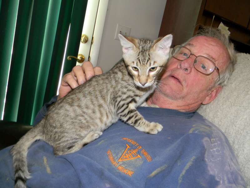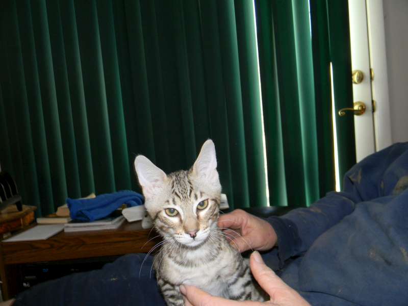 Teddy Savannah F-6B Brown Spotted Male DOB 11-17-14Teddy has gone home to MO to be Sandy's BFF! Pretty spots on this beautiful boy. What a sweet savannah boy. Great savannah face and ears. See great ears you have! [Show slideshow]