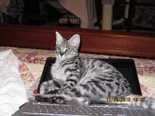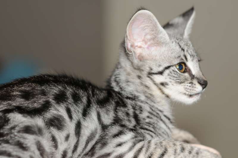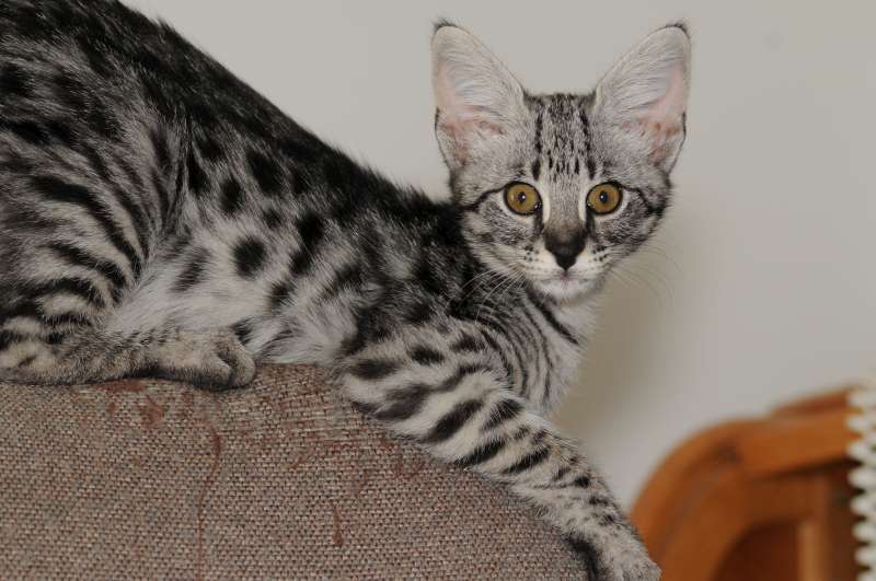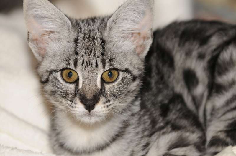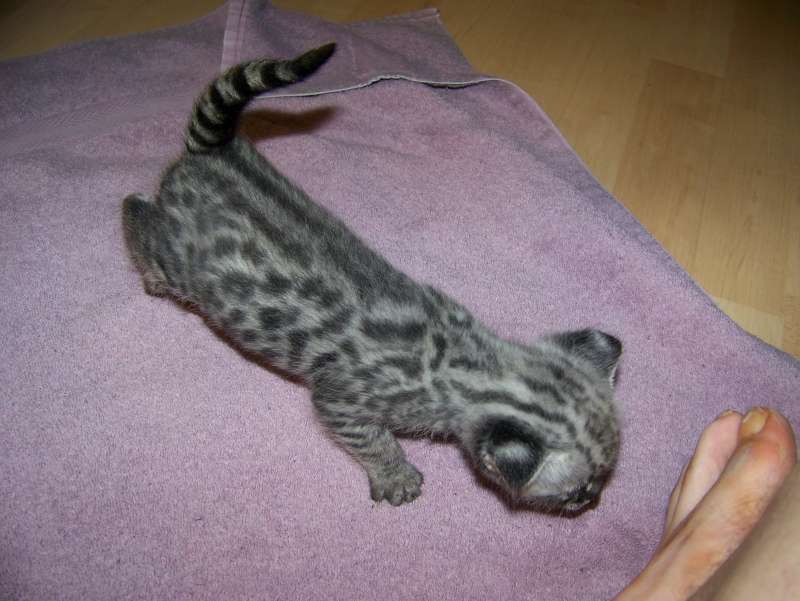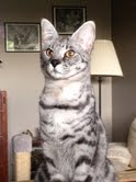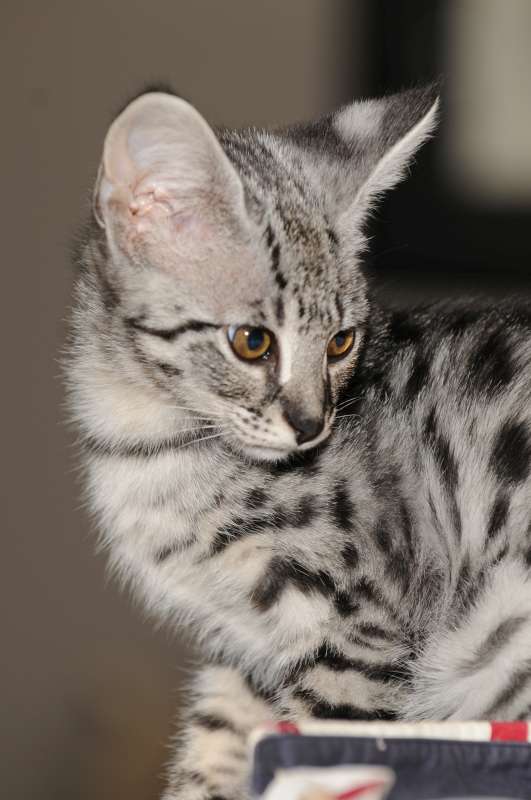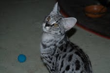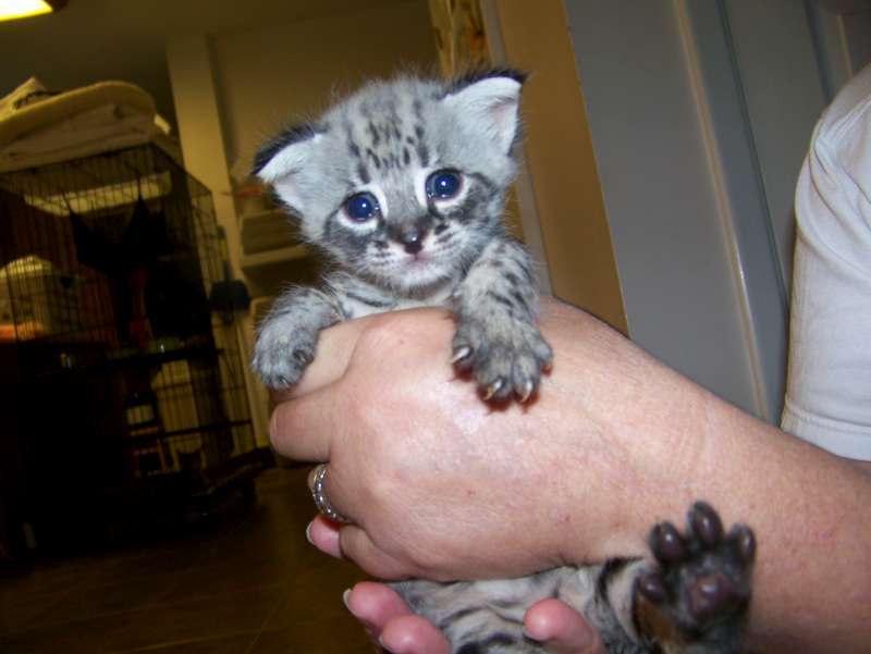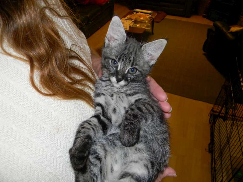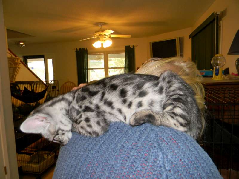 Toby is Mister personality. He is bold and outgoing. He is as close to silver as you can get in F-1 generation, with clear spots, great ocilla on his currently floppy ears, short thick tail and a wonderfully expressive face. Sure to make a wonderful new family member for Howard and Cheryl in Tennessee.