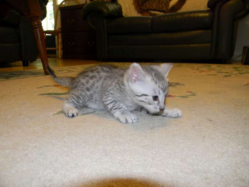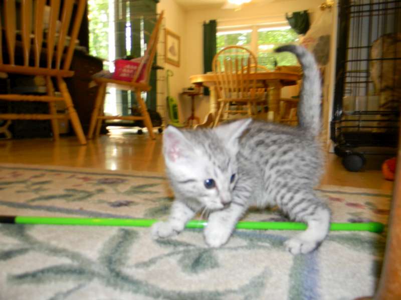 Victor a precious little Egyptian Mau boy is going to a home in NC where he will be a new family member for Annette and family which includes another silver Mau named "Vinnie".