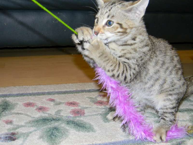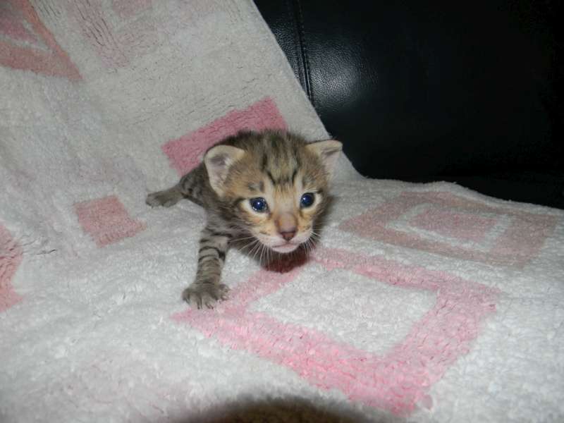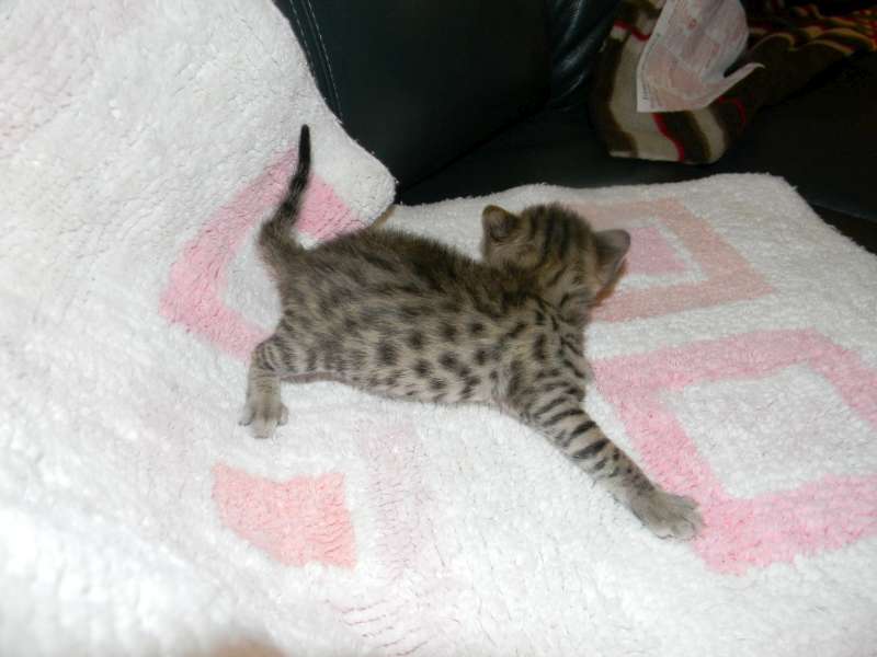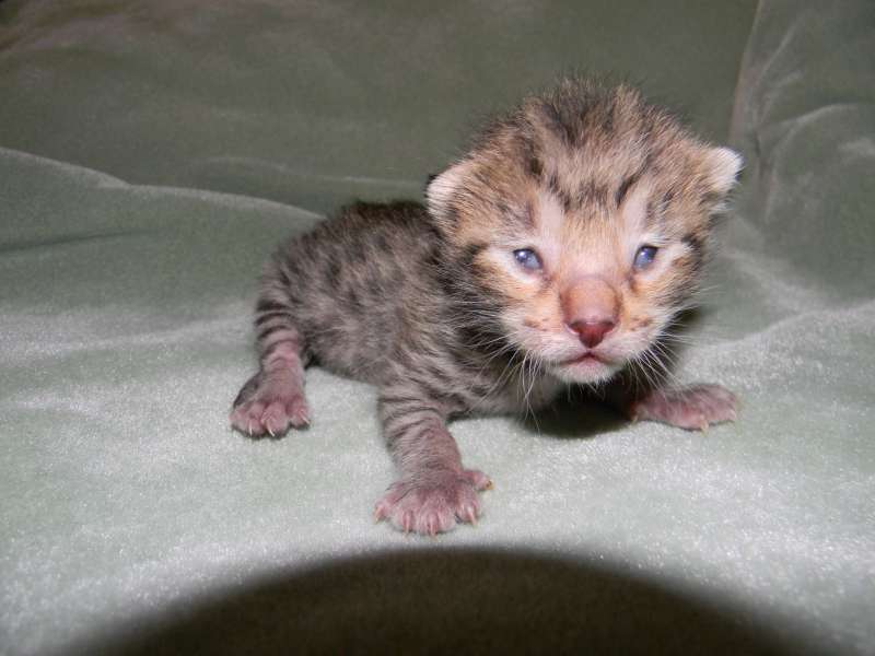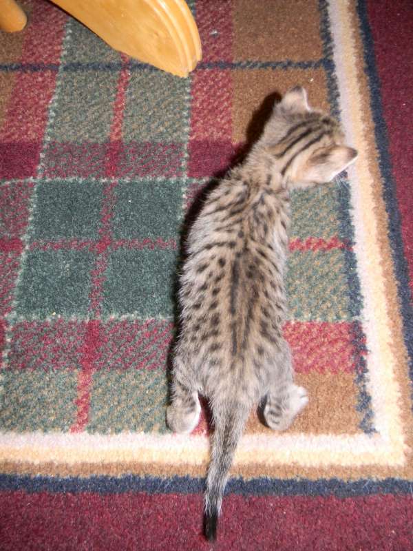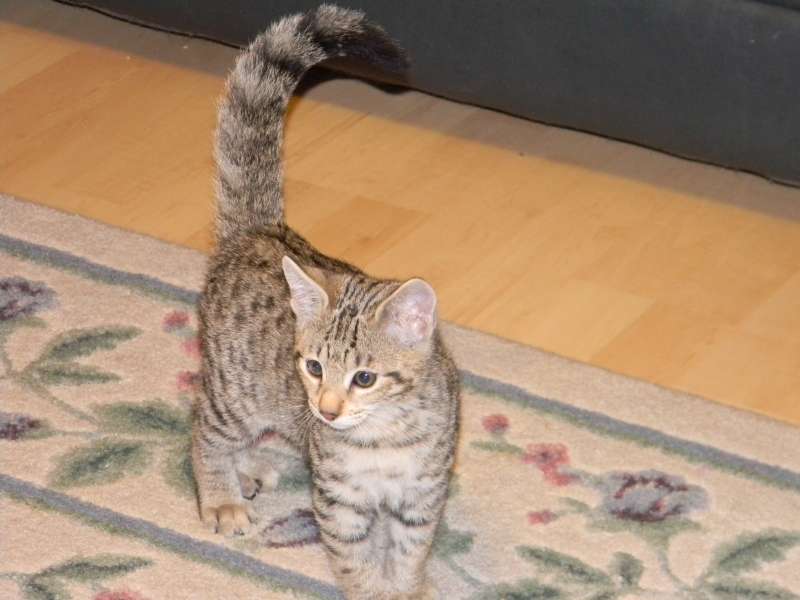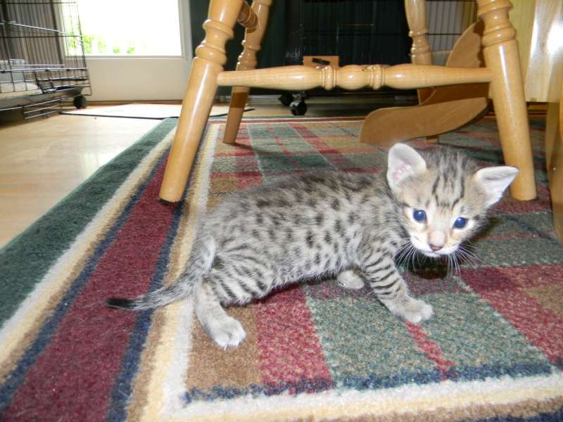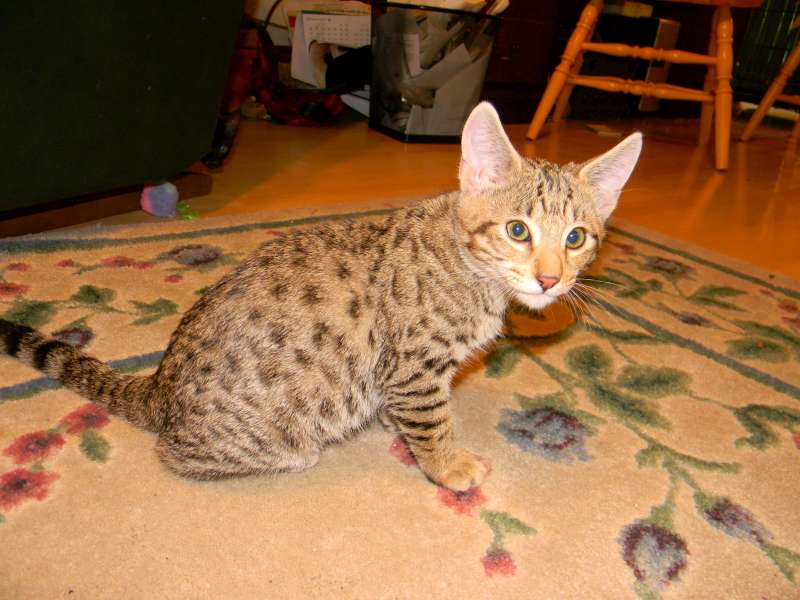 This little F-4C savannah Jewel found her forever home with Sherie and husband. She and her sister Froggy will be cherished pets with homes in North Carolina and Florida.