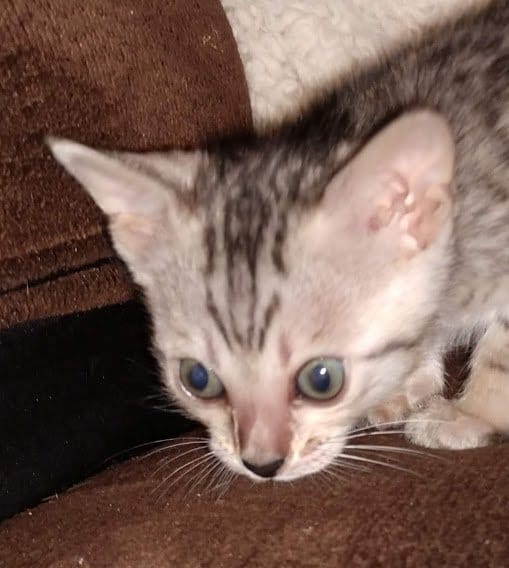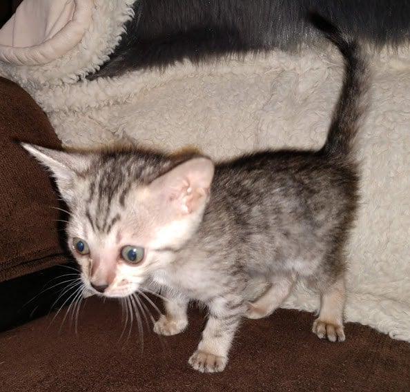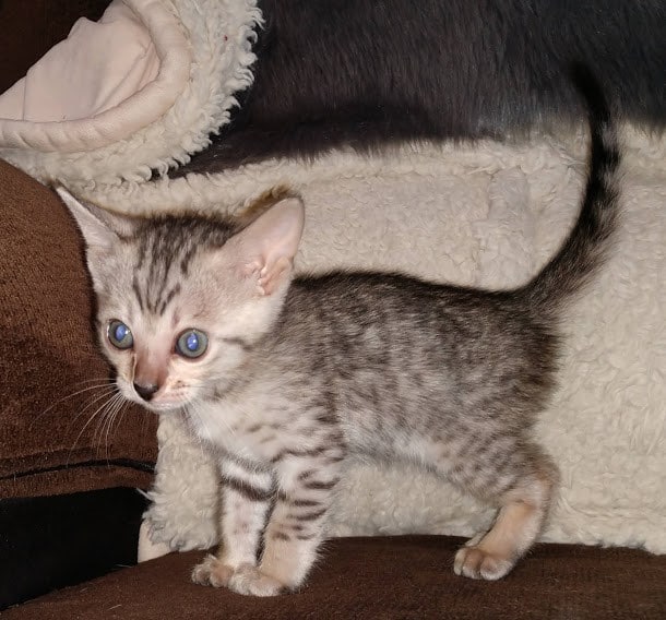 Pale in color this girl has lovely spots and an almost silver glow about her. She will be going home to Barrod and Paloma in VA.