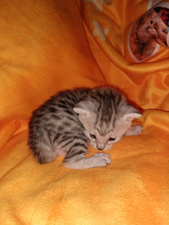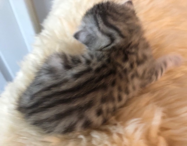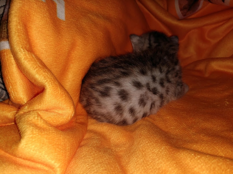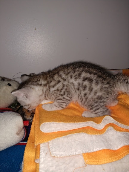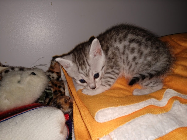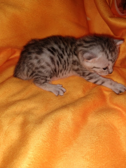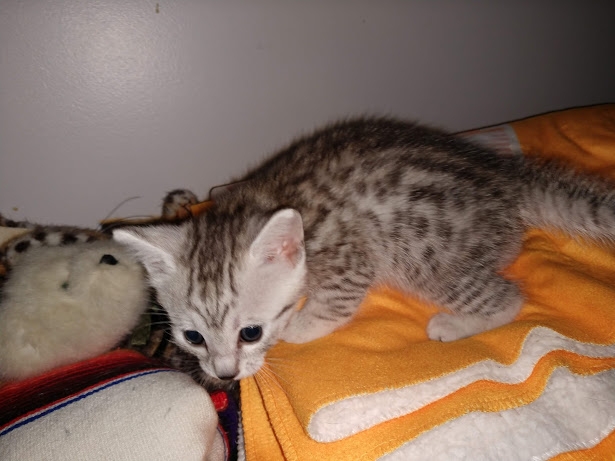 Charity Egyptian Mau Silver Female DOB 4-18-19Sweet as sugar, this silver Mau girl will be a snuggle bug when she grows up. She is being retained by Belle Hollow for our future breeding program. [Show slideshow]