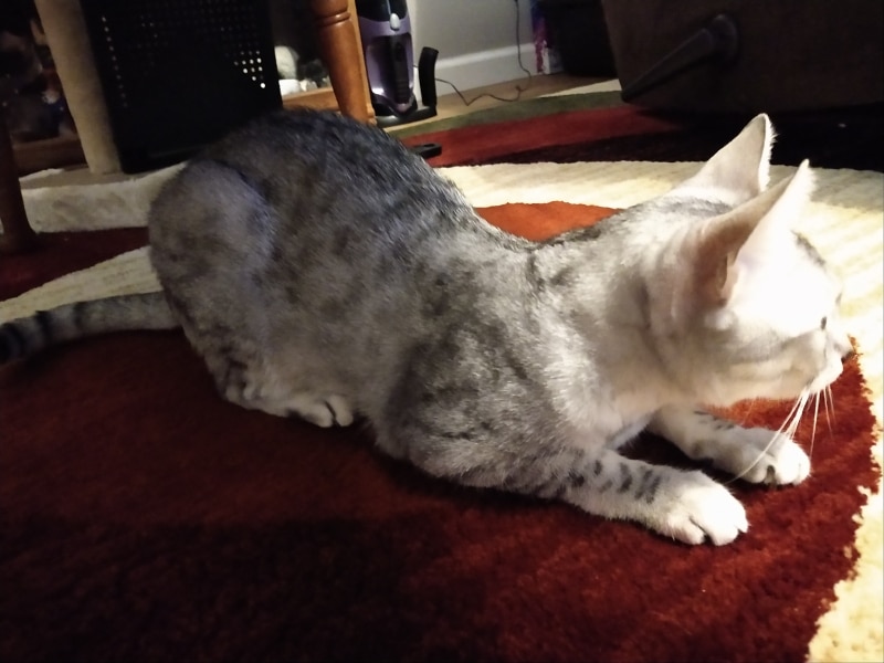 Lovey, Egyptian Mau, female DOB 7-13-19Wildtrax Beloved of Bellehollow is the result of a collaboration with Tracey Wilson at Wildtrax and Belle Hollow. By sharing our gene pools we are better able to secure more genetic diversity in our Maus, [Show slideshow]