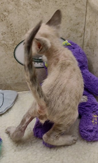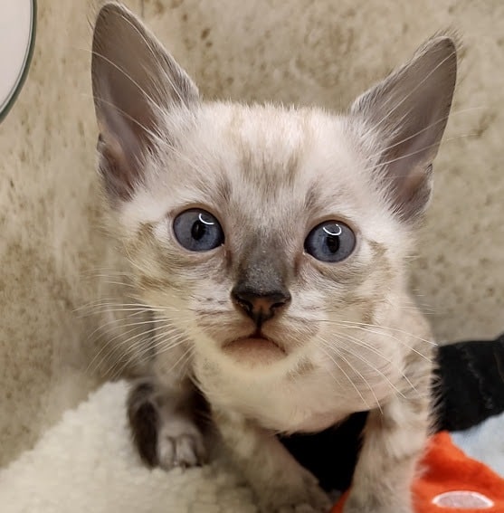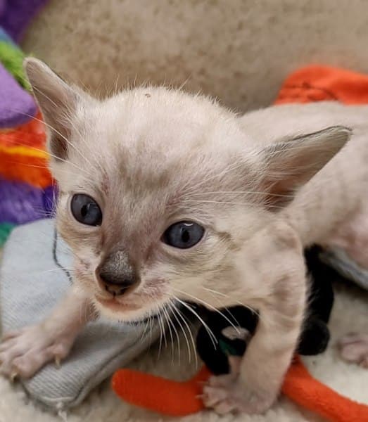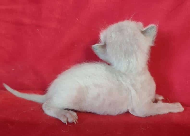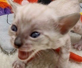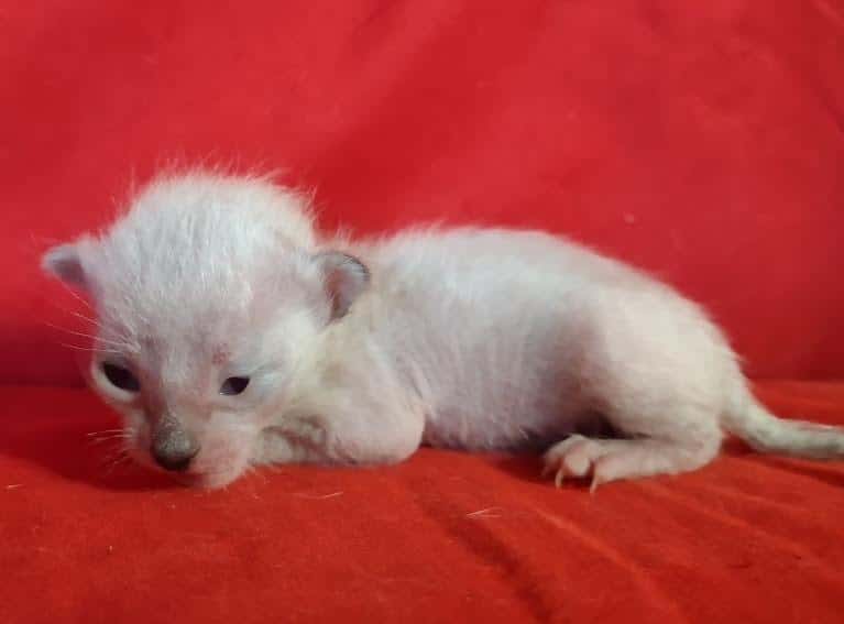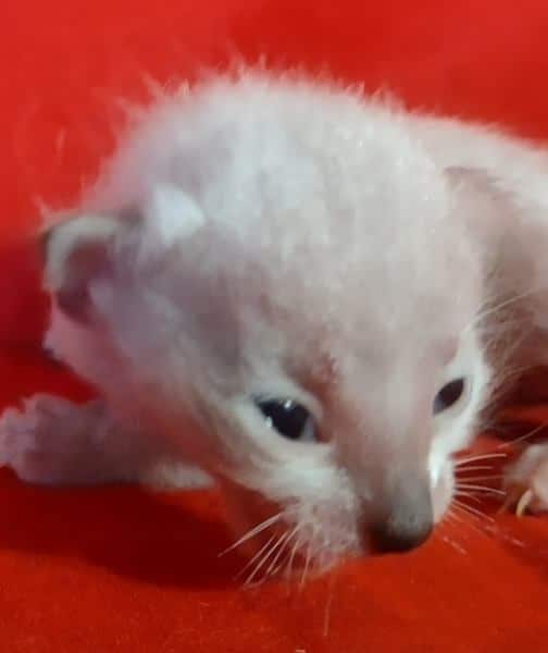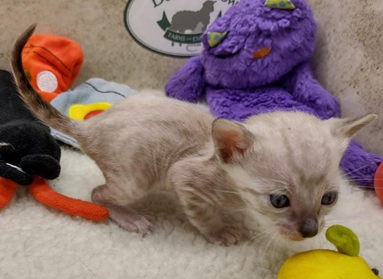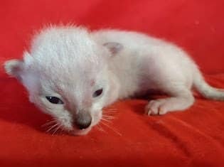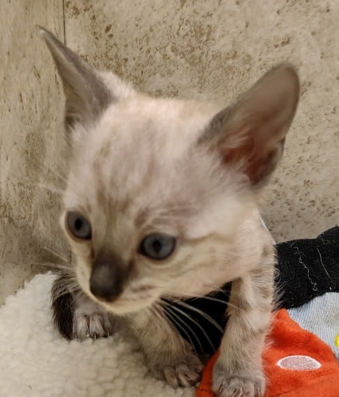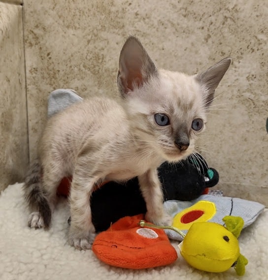 This sweet little F-6SBT snow savannah boy is the tiniest of his litter. In that there are 9 he is doing great but he has some catching up to do. You can see the spots coming in his coat and the dark points well under way. I suspect he will out grow several of his siblings but has to catch up from behind. He and his Brown Spotted Sister Freya have gone home with Saben and his other two brother cats in NC
